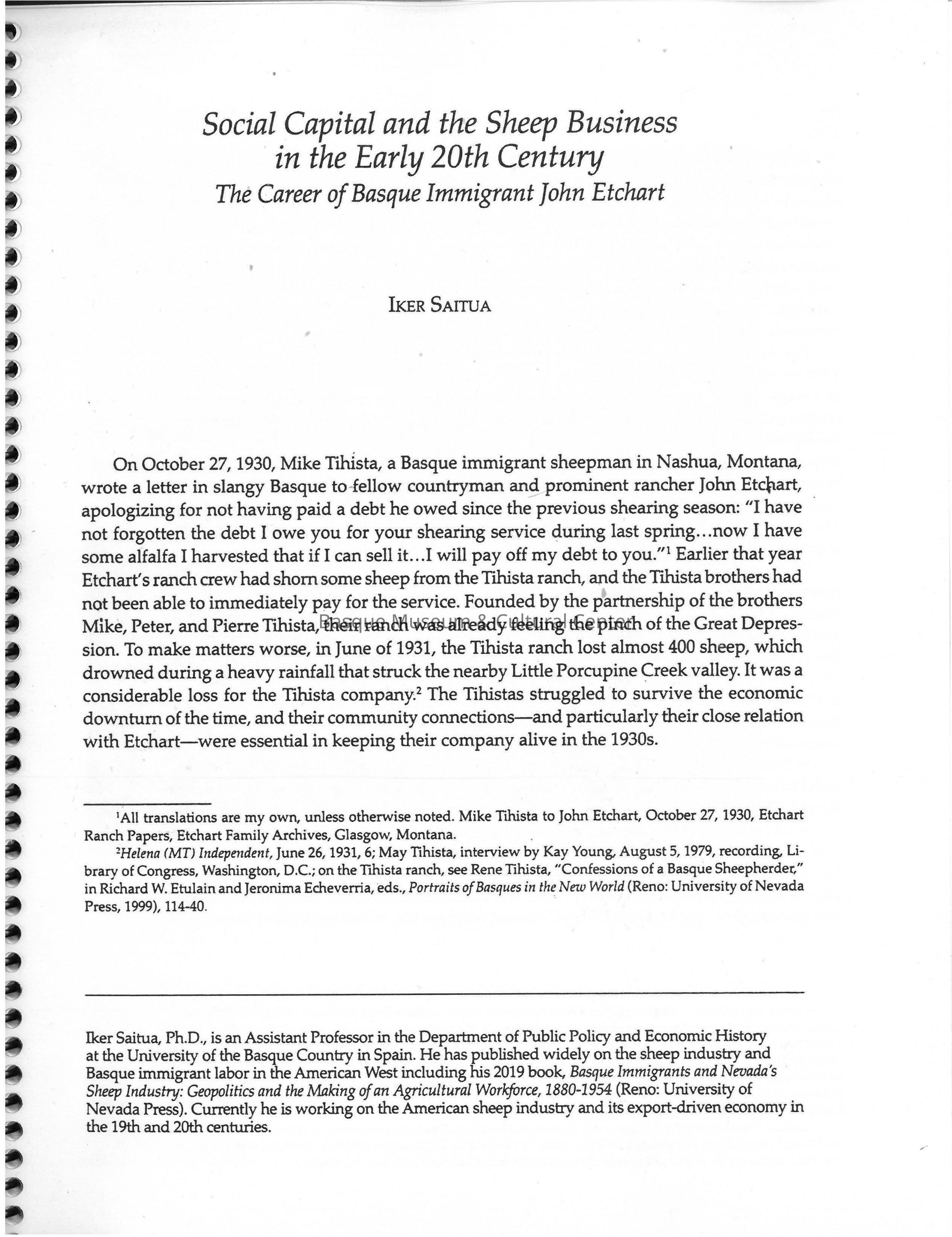 Social Capital and the Sheep Business in the Early 20th Century: The career of Basque immigrant John EtchartEntry/Object ID