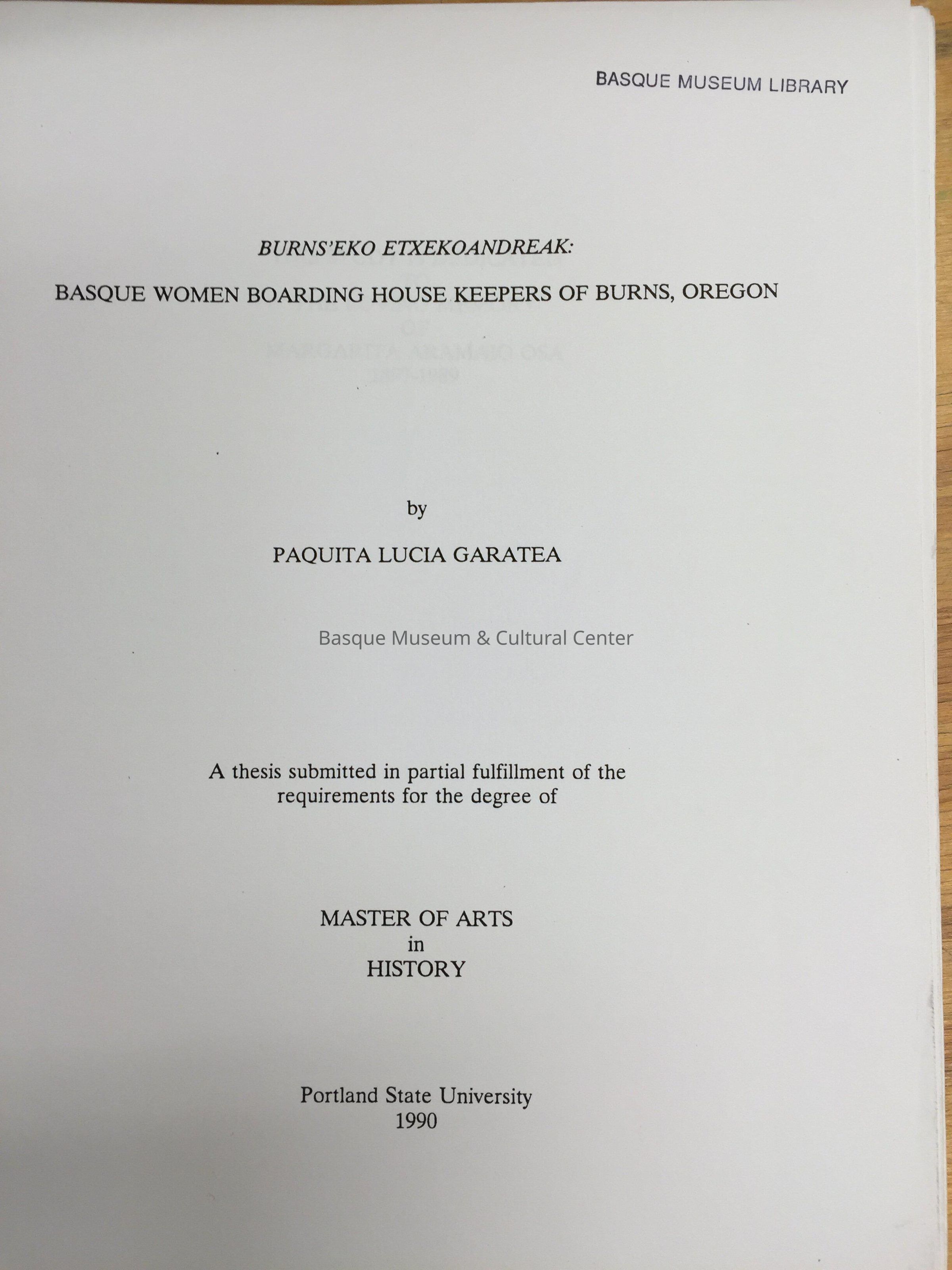 Burns'eko etxekoandreak = Basque women boarding house keepers of Burns, OregonEntry/Object ID
