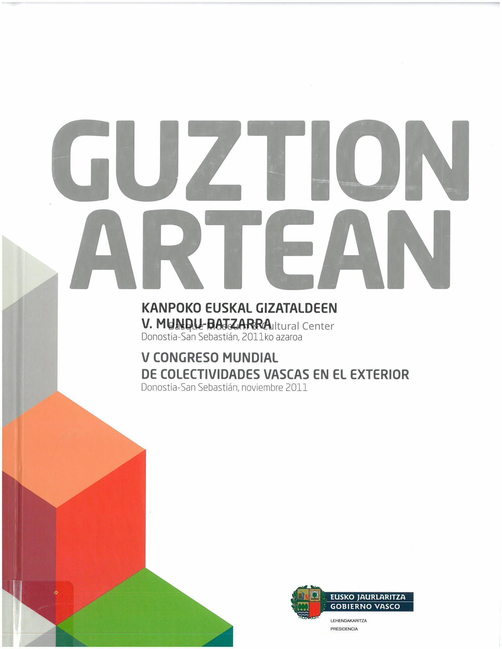 Guztion Artean: Kanpoko Euskal Gizataldeen V. Mundu-Batzarra, Donostia-San Sebastia´n, 2011ko azaroa = V Congreso Mundial de Colectividades Vascas en el Exterior, Donostia-San Sebastia´n, noviembre 2011.Entry/Object ID