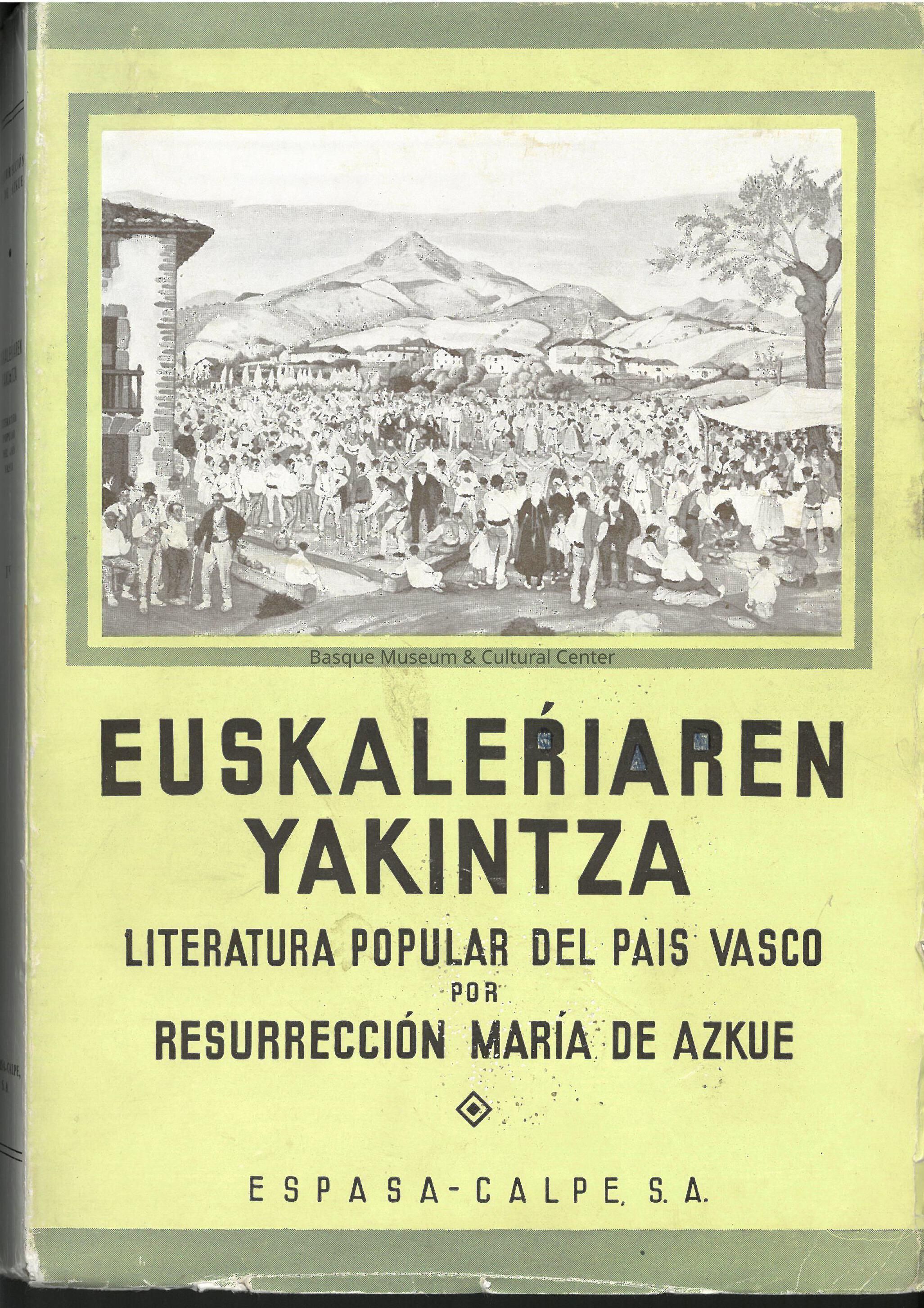 Euskaleŕiaren yakintza = Literatura popular del país vasco / Resurrección María de Azkue ; con ilustraciones de Ignacio Zuloaga ... [and others] .4 volumes : illustrations, music ; 25 cmBook Details