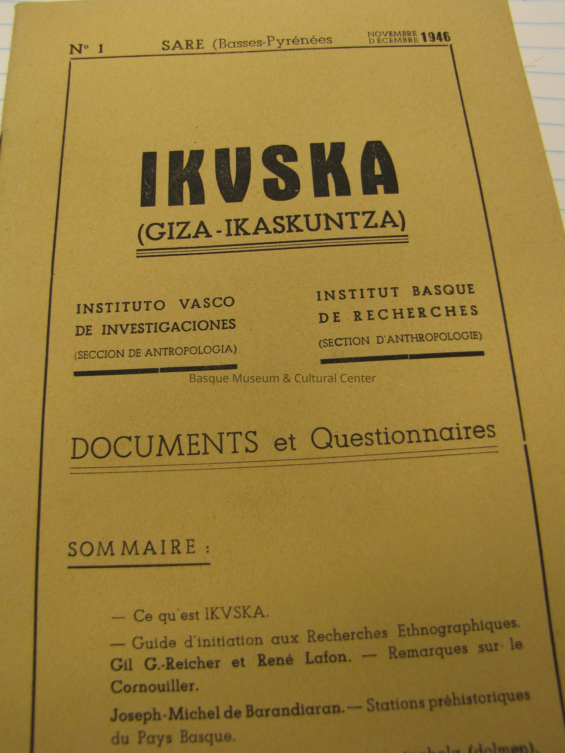 Small booklet periodical called Ikuska No. 1 SARE(Basses-Pyrenees Noviembre Deciembre 1946