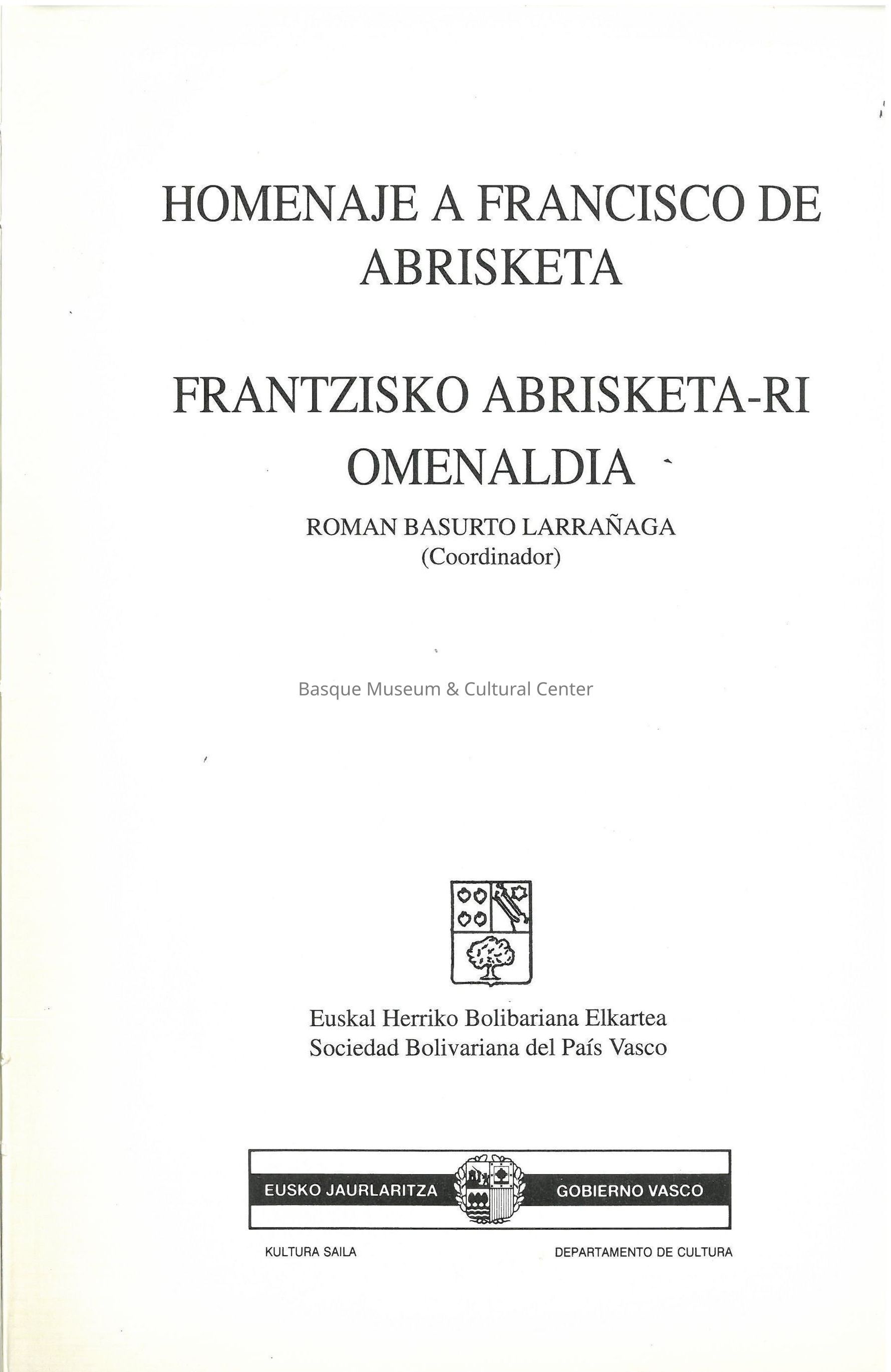 Homenaje a Francisco de Abrisketa = Frantzisko Abrisketa-ri omenaldiaEntry/Object ID