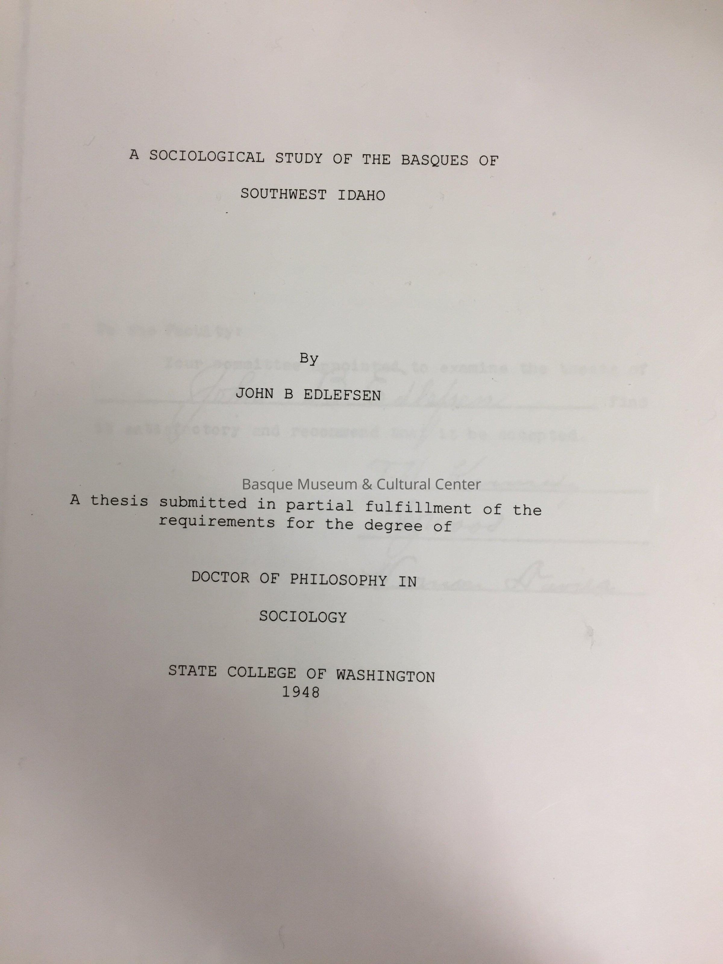 A sociological study of the Basques of southwest IdahoEntry/Object ID