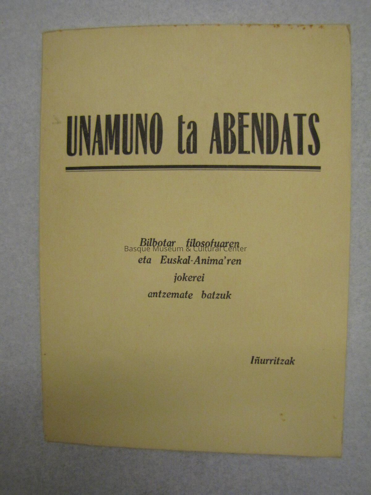 Unamuno ta Abendats: Bilbotar filosofuaren eta Euskal-Anima'ren jokerei antzemate batzuk / IñurritzakEntry/Object ID