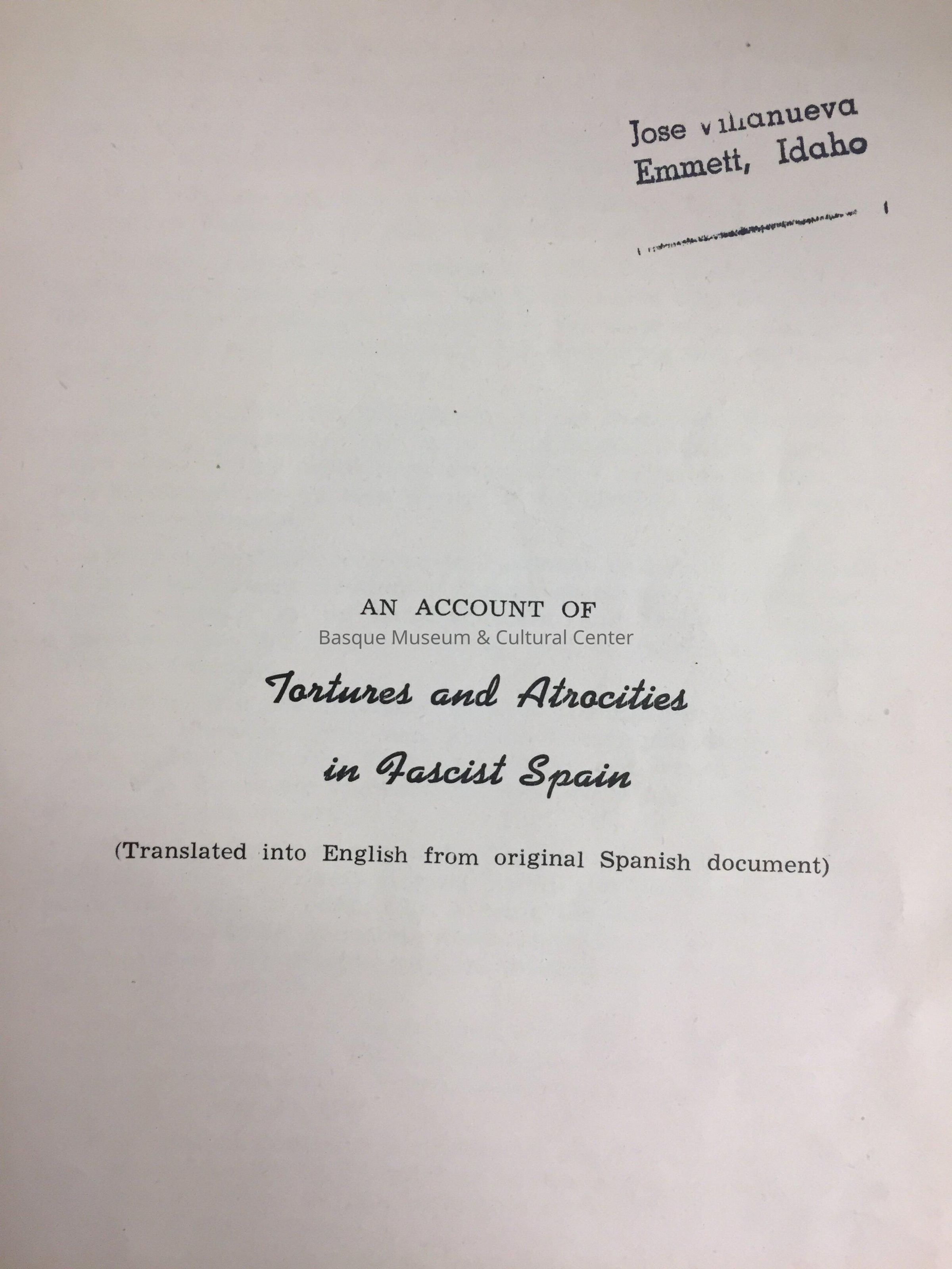 An account of tortures and atrocities in Fascist Spain