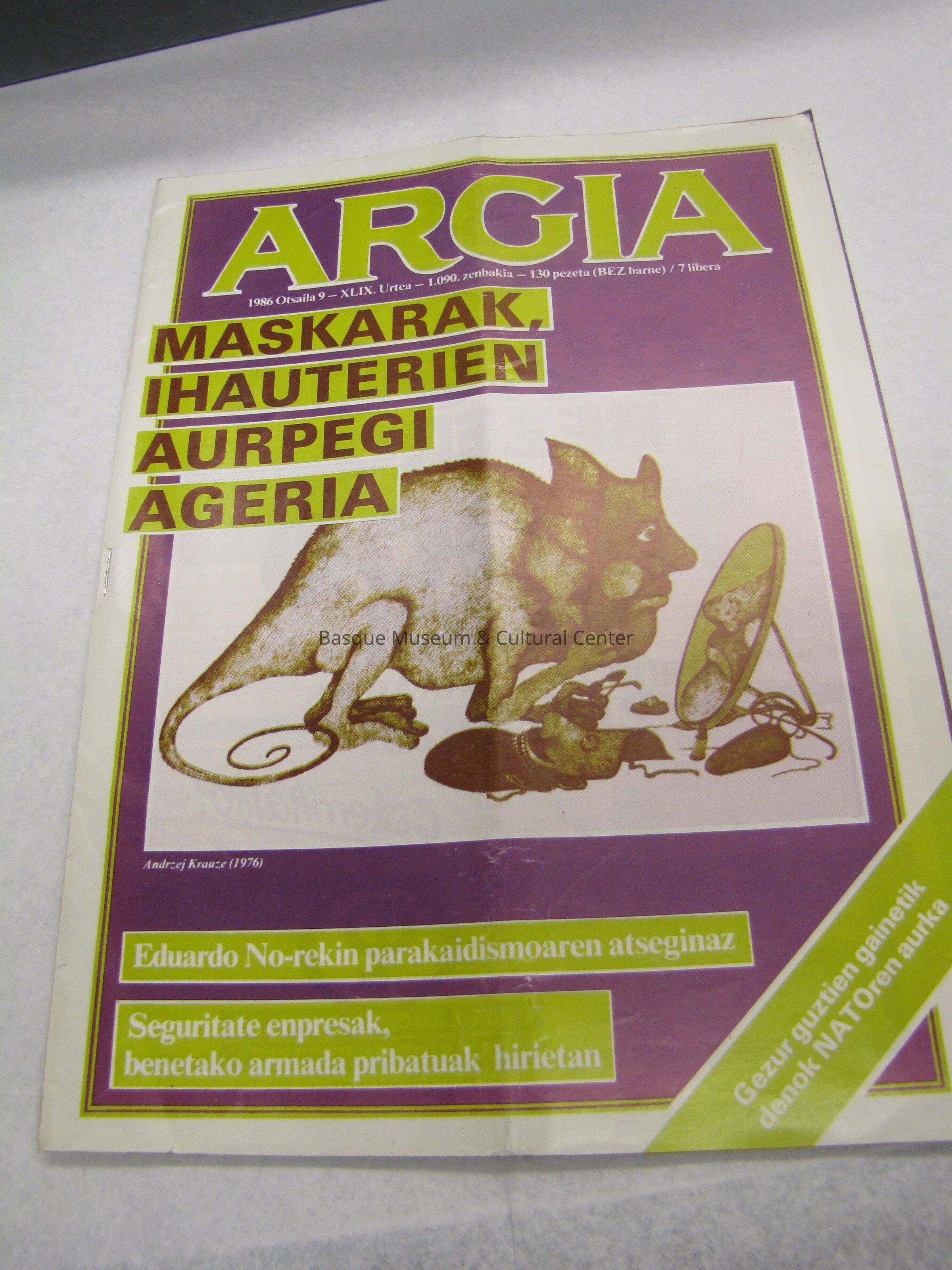 Argia 1986 Otsaila 9 urtea- 1.090, Zenbakia- 130 pezeta(BEZ barne) /7 libera