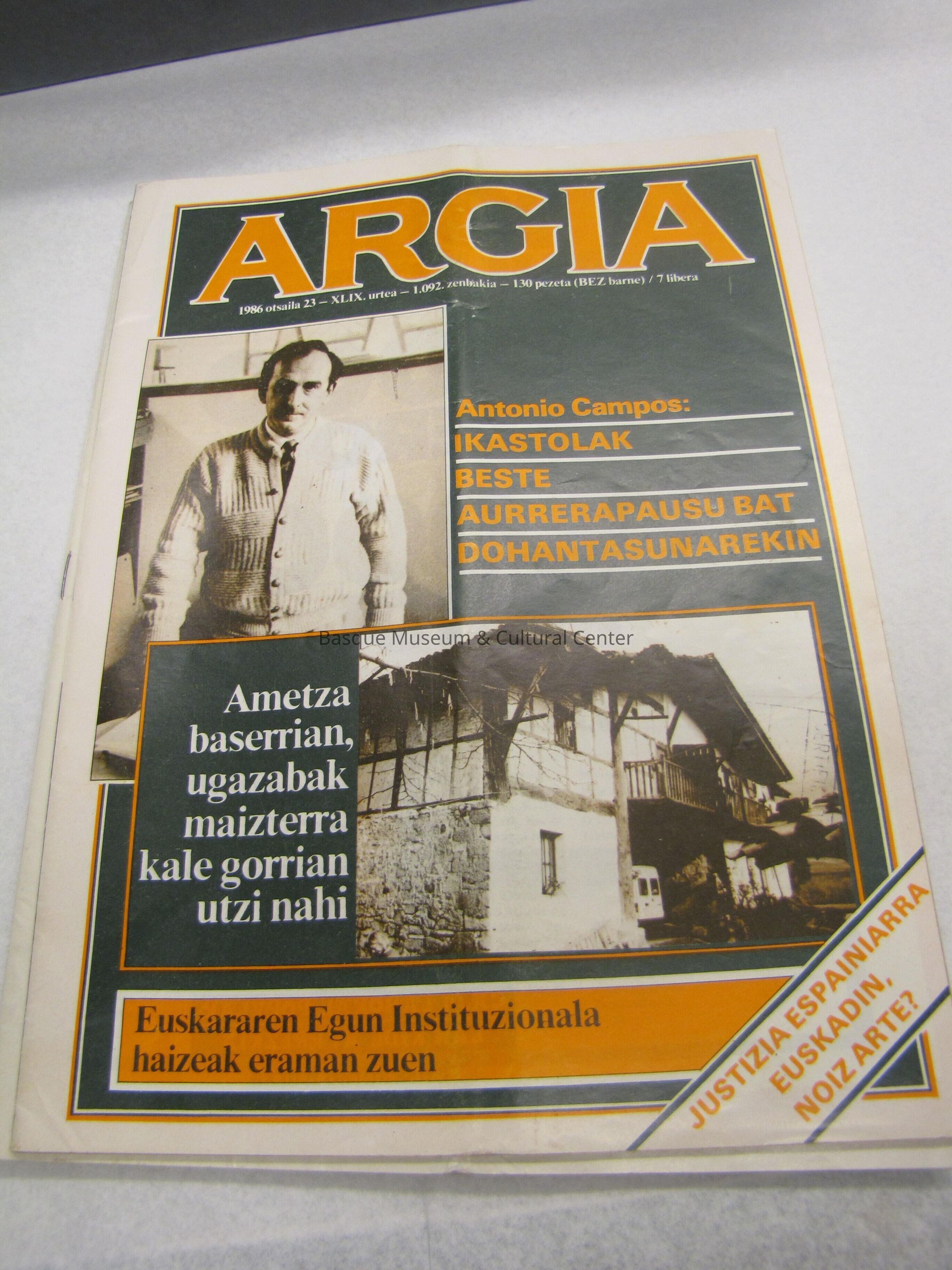 Argia 1986 Otsaila 23 urtea- 1.092, Zenbakia- 130 pezeta(BEZ barne) /7 libera
