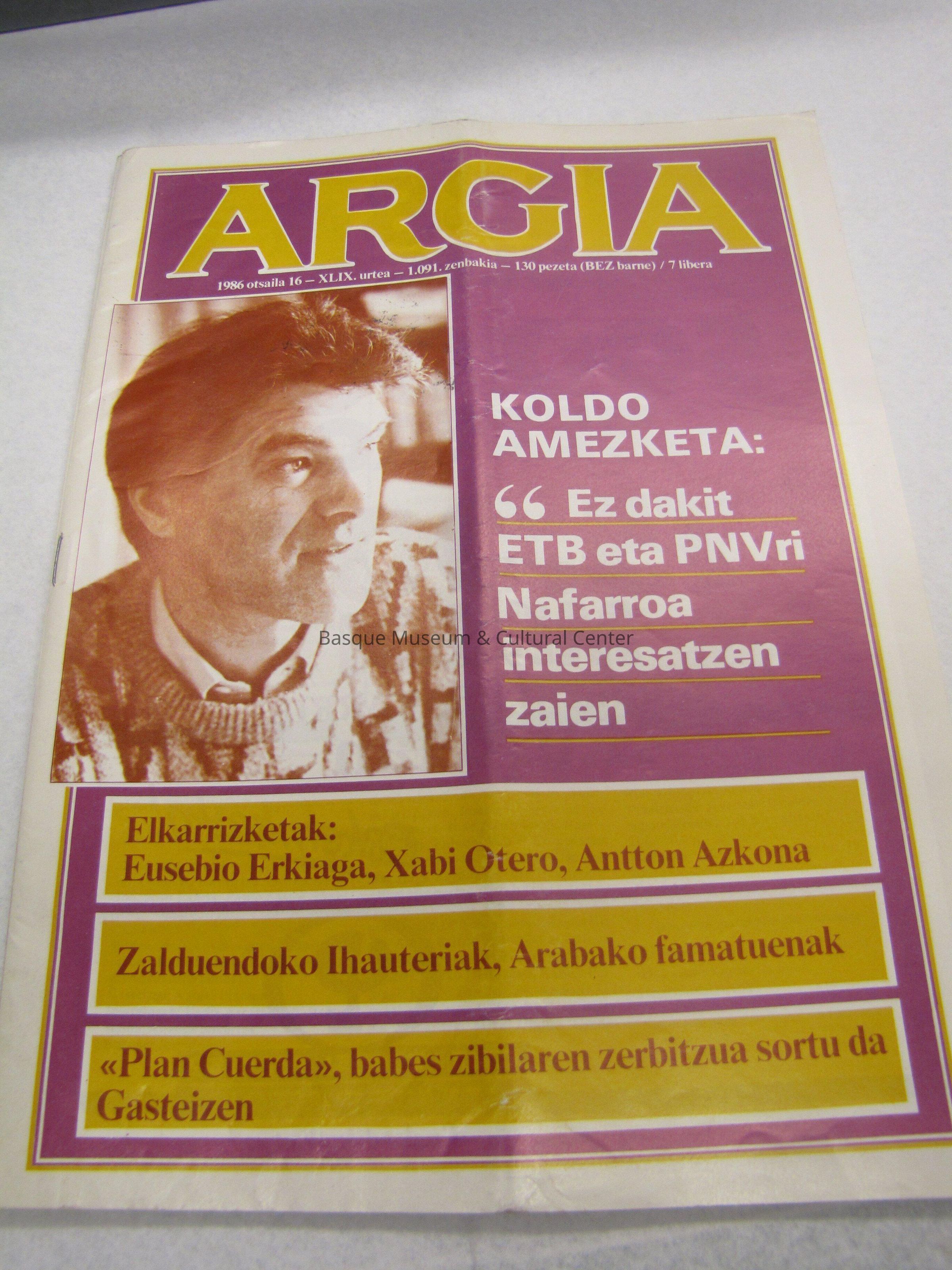 Argia 1986 Otsaila 16 urtea- 1.091, Zenbakia- 130 pezeta(BEZ barne) /7 libera