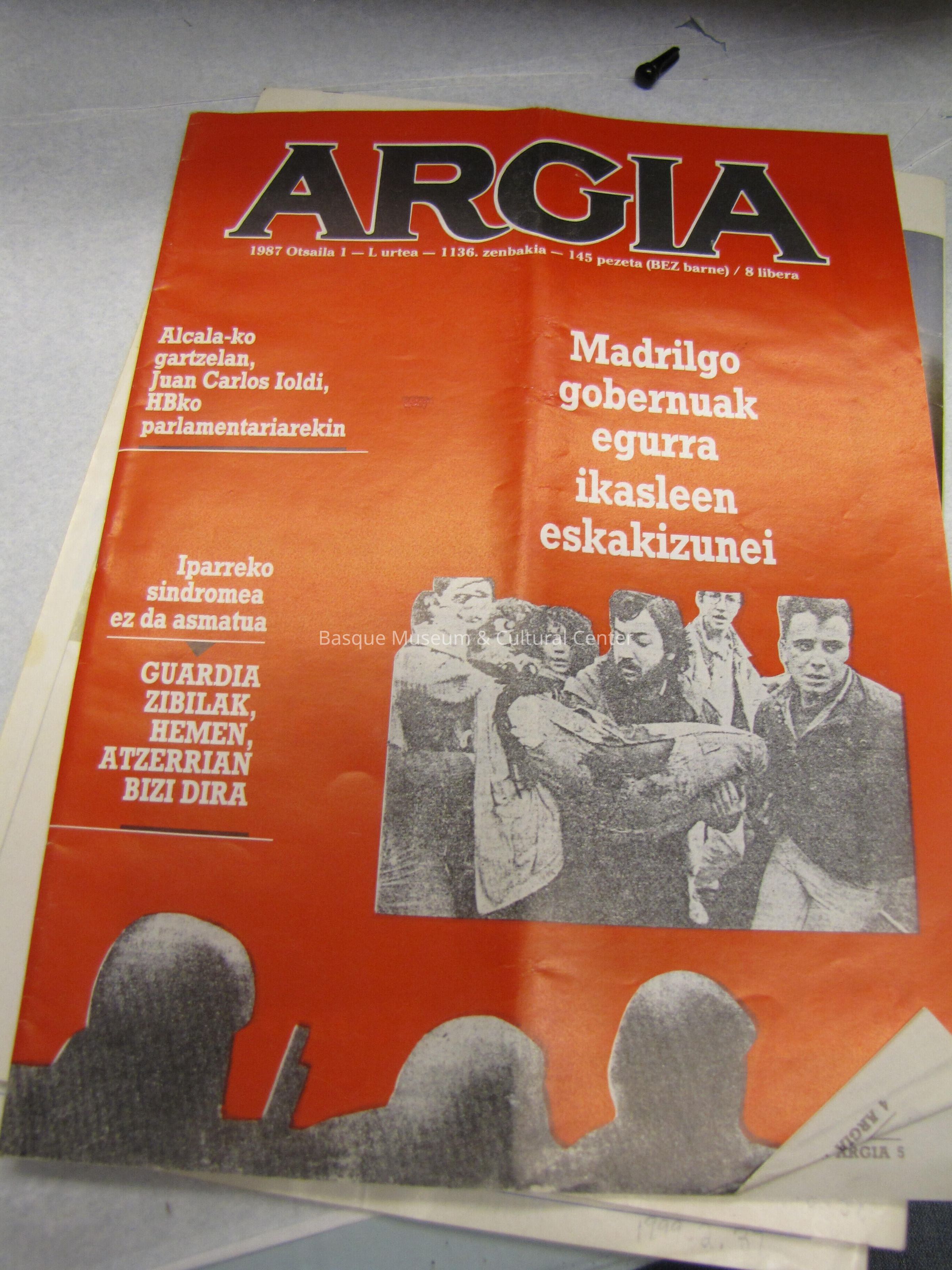 Argia 1987 Otsaila 1- L urtea- 1136. Zenbakia- 145 pezeta(BEZ barne) /8 libera