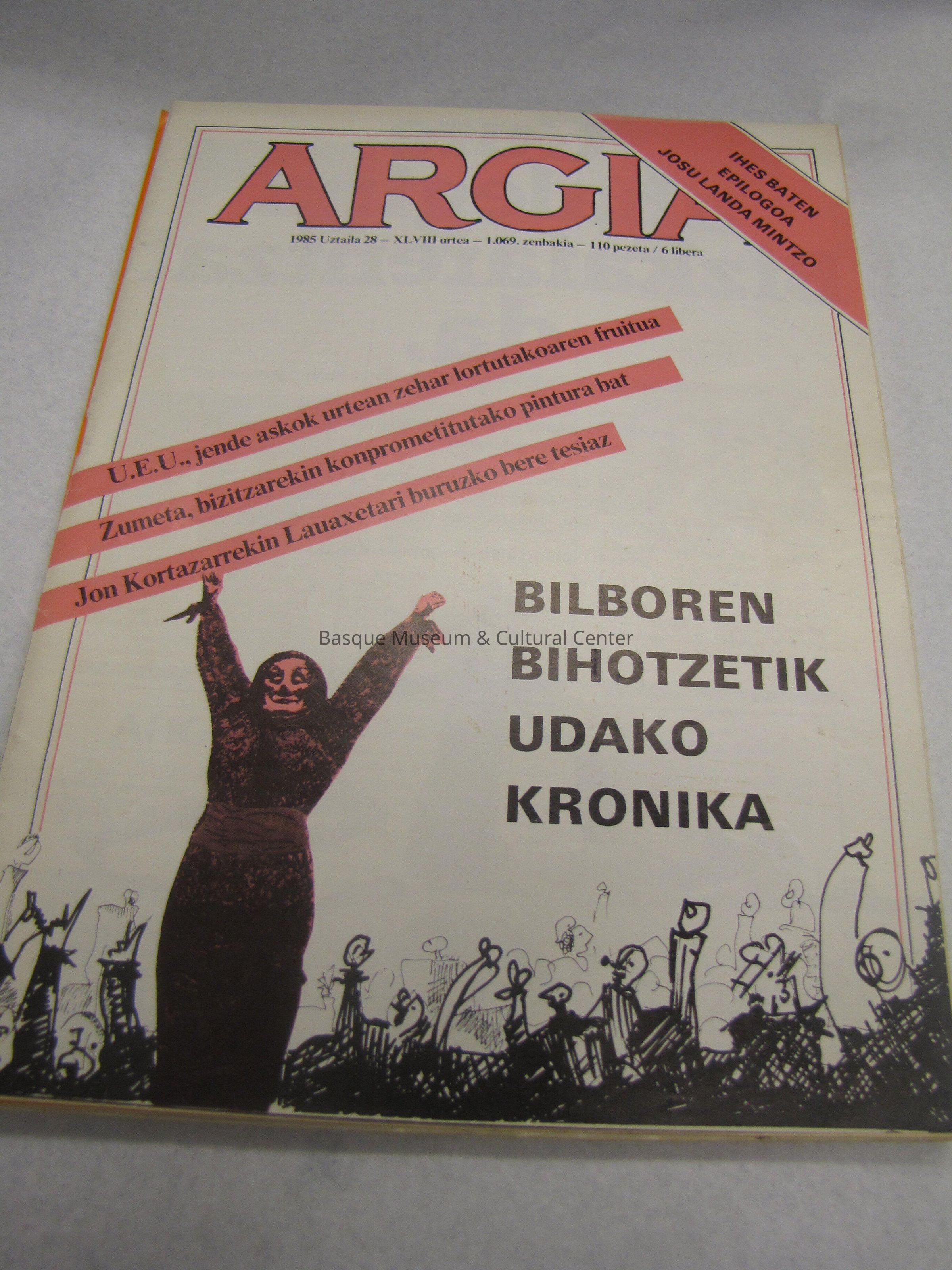 Argia 1985 Abendua 29 -1986 Urtarrila 5 -XL VIII Urtea- 1.084- 1085 Zenbakiak -130 pezeta/ 7 libera