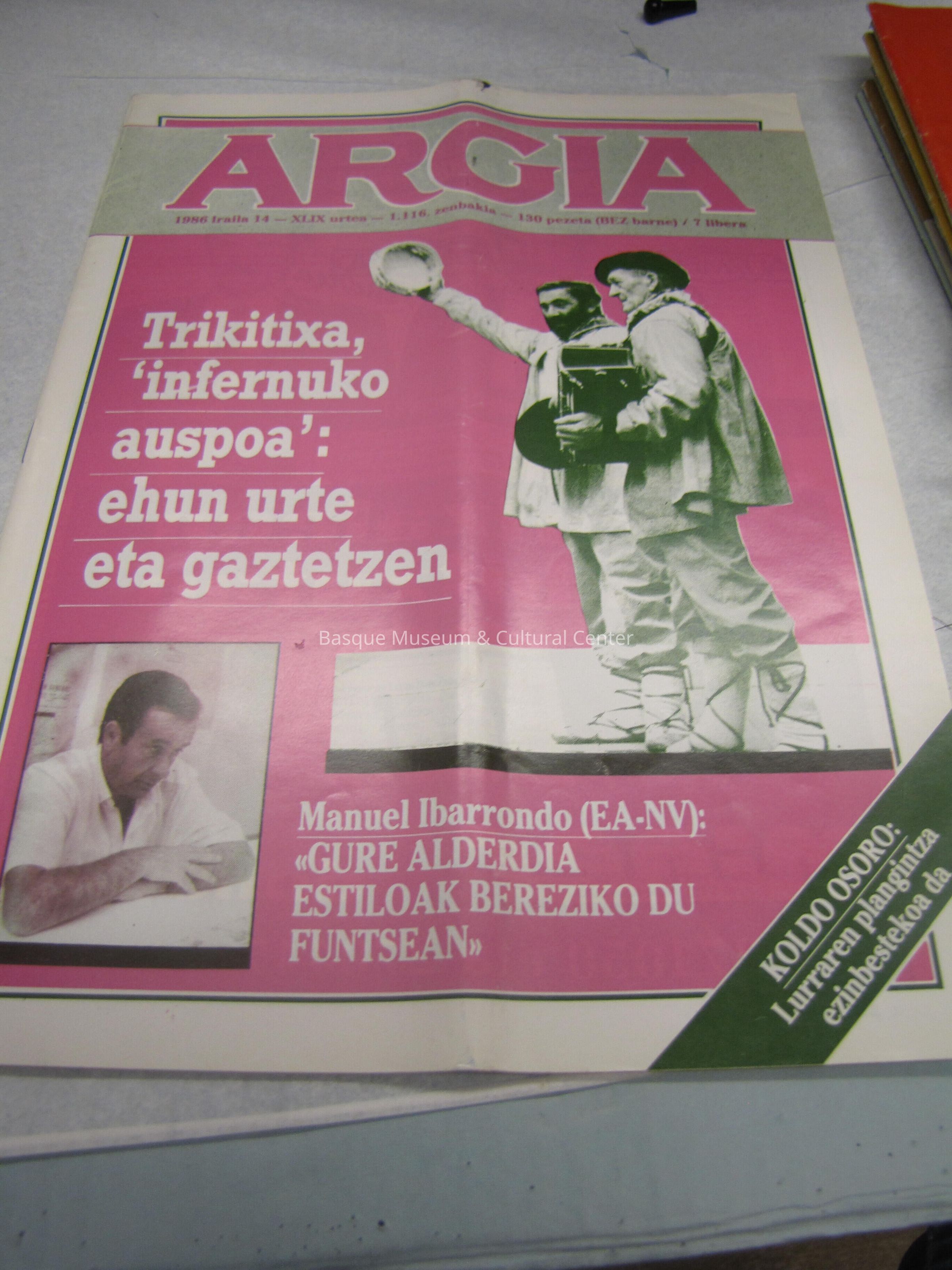 Argia 1986 Iraila 14- XLIX. urtea- 1.116., Zenbakia- 130 pezeta(BEZ barne) /7 libera