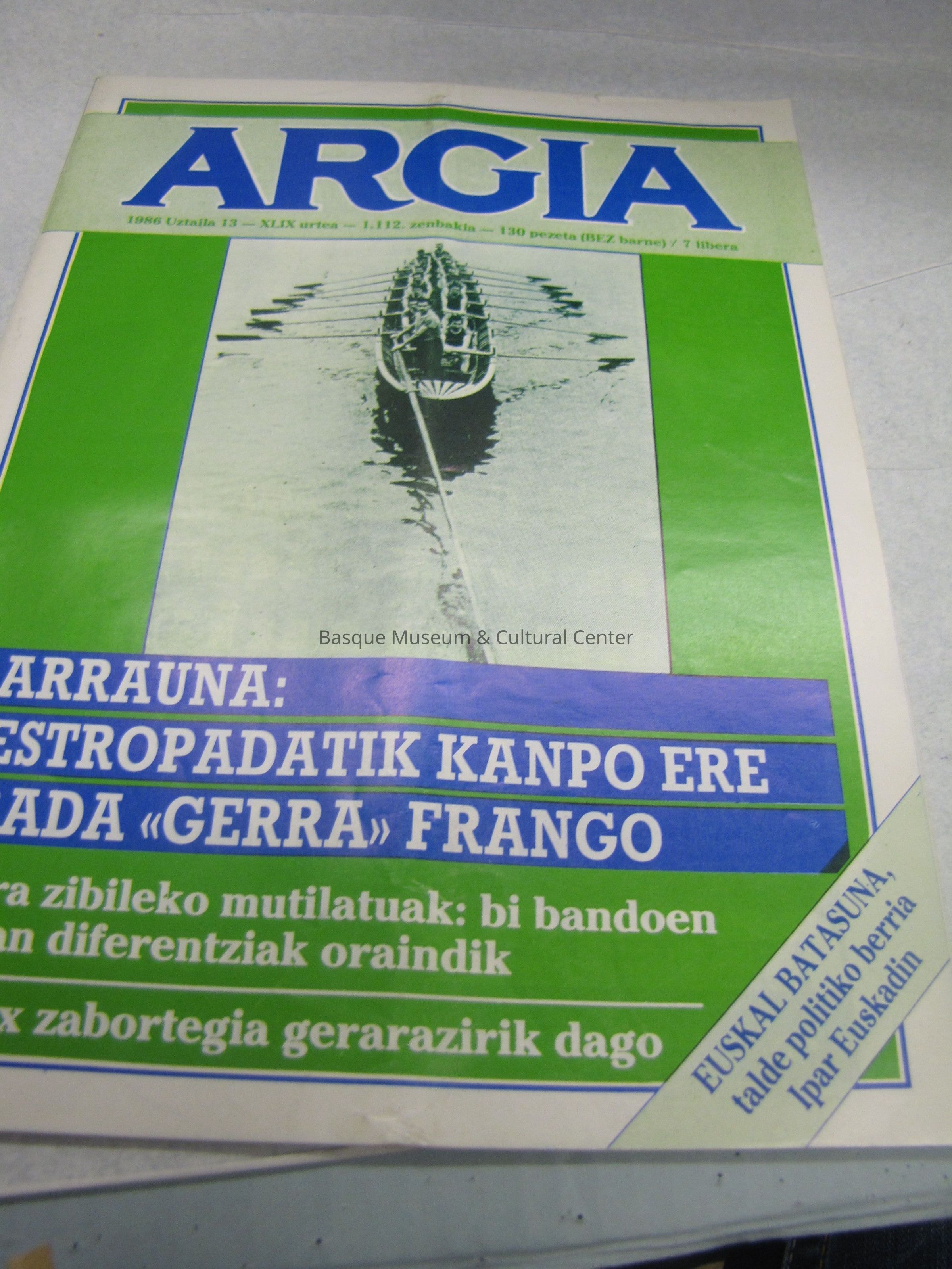 Argia 1986 Uztaila 13- XLIX. urtea- 1.112., Zenbakia- 130 pezeta(BEZ barne) /7 libera