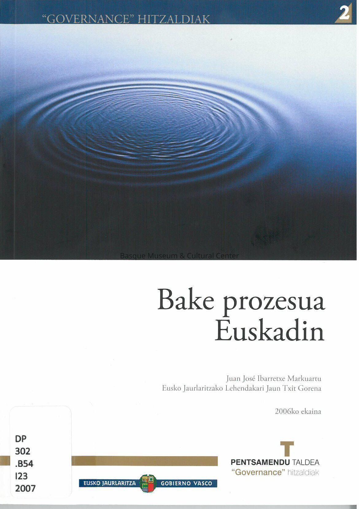 Bake prozesua Euskadin = The peace process in Euskadi : Juan Jose´ Ibarretxe Markuartu, Lehendakariaren hitzaldia, United States Institute of Peace (USIP)-en.Entry/Object ID