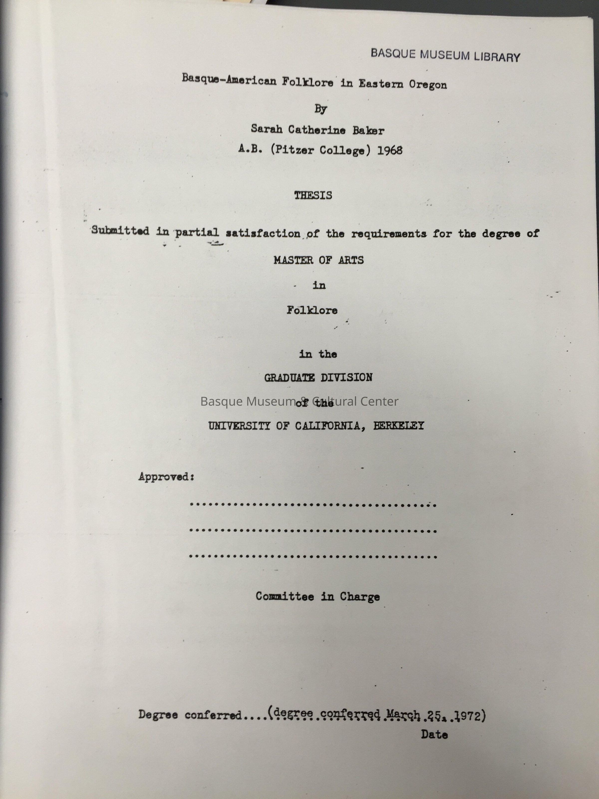 Basque-American folklore in eastern OregonEntry/Object ID