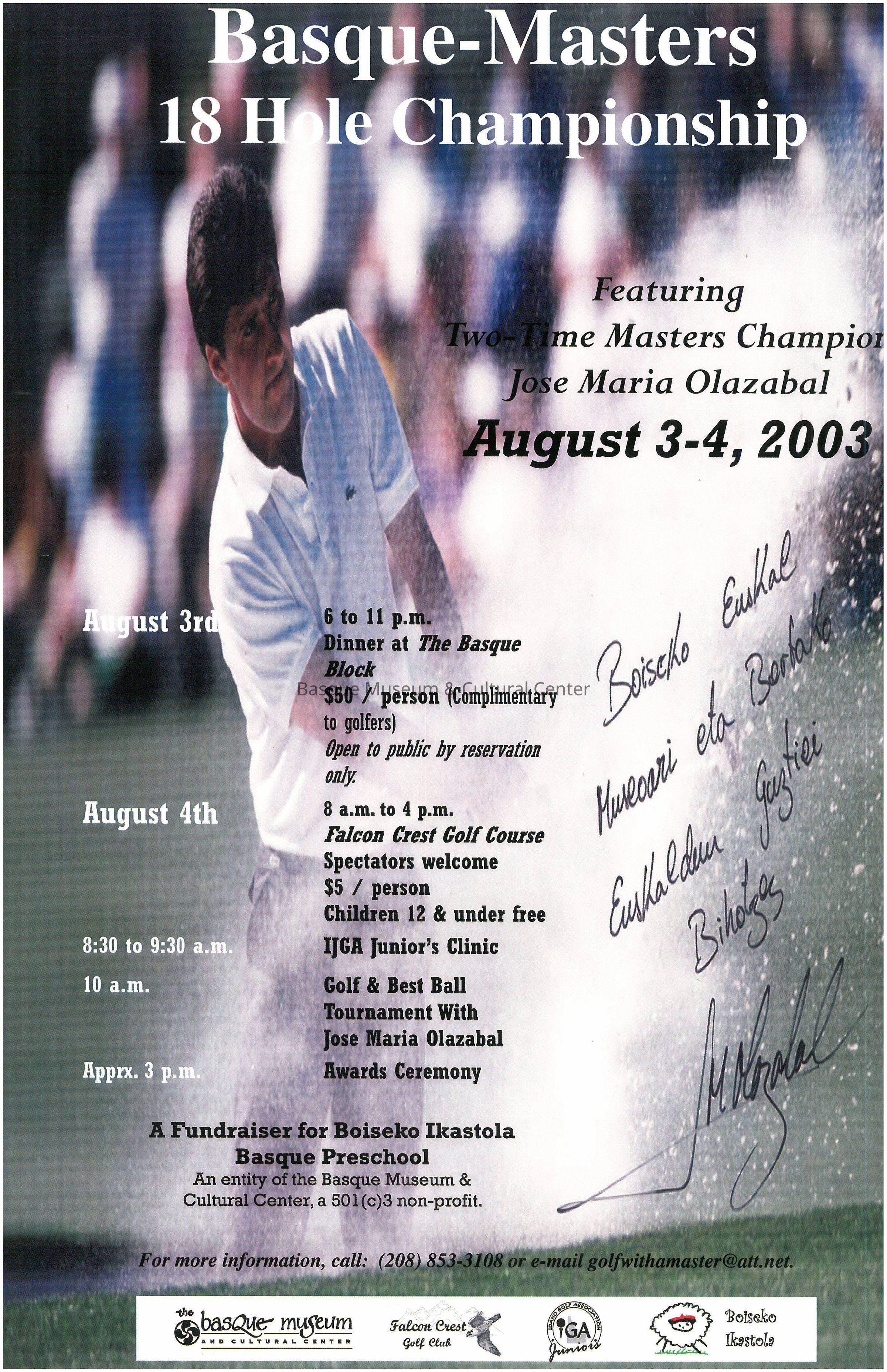 Color promotional poster for the "Basque-Masters 18 Hole Championship"