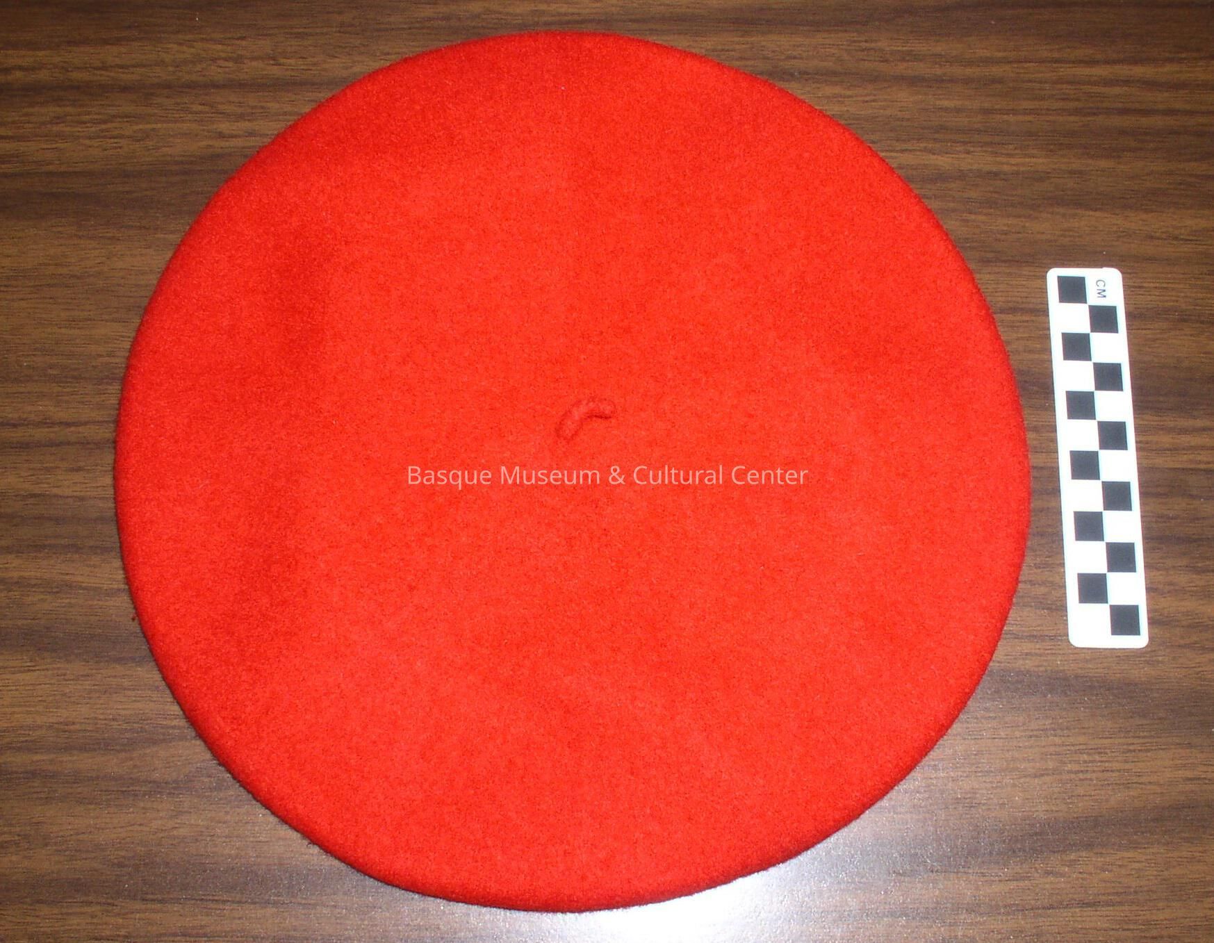 Red wool txapela, no tag, lining, or maker information.