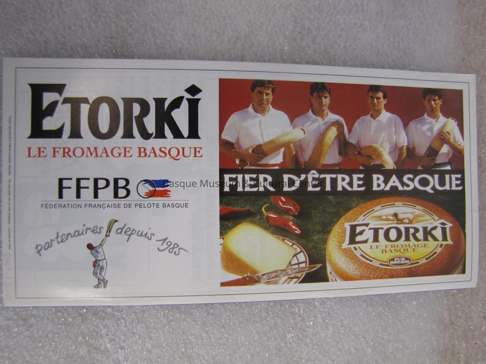 A brochure for the "75th Grande Semaine de Pelote Basque" The cover is blue, with white lettering. There is a Jai Alai player on teh front, and then actual pictures of people playing the game. Under the cartoon one, it says "Finales des Championnats de France" and then in a yellow bubble "du 9 au 17 Aout 1997"