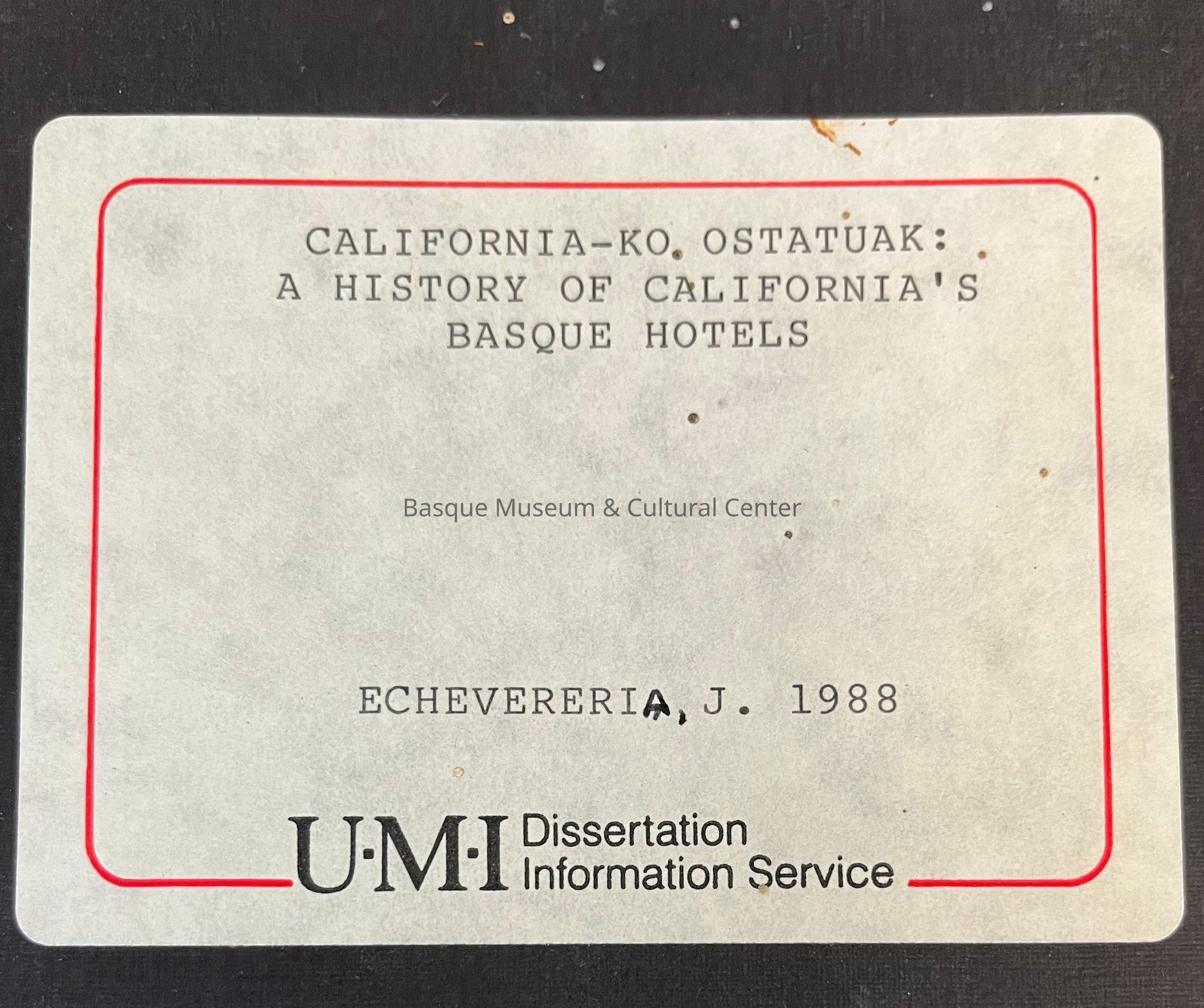 National characteristics, Basque -- California -- Social life and customsCall No.
