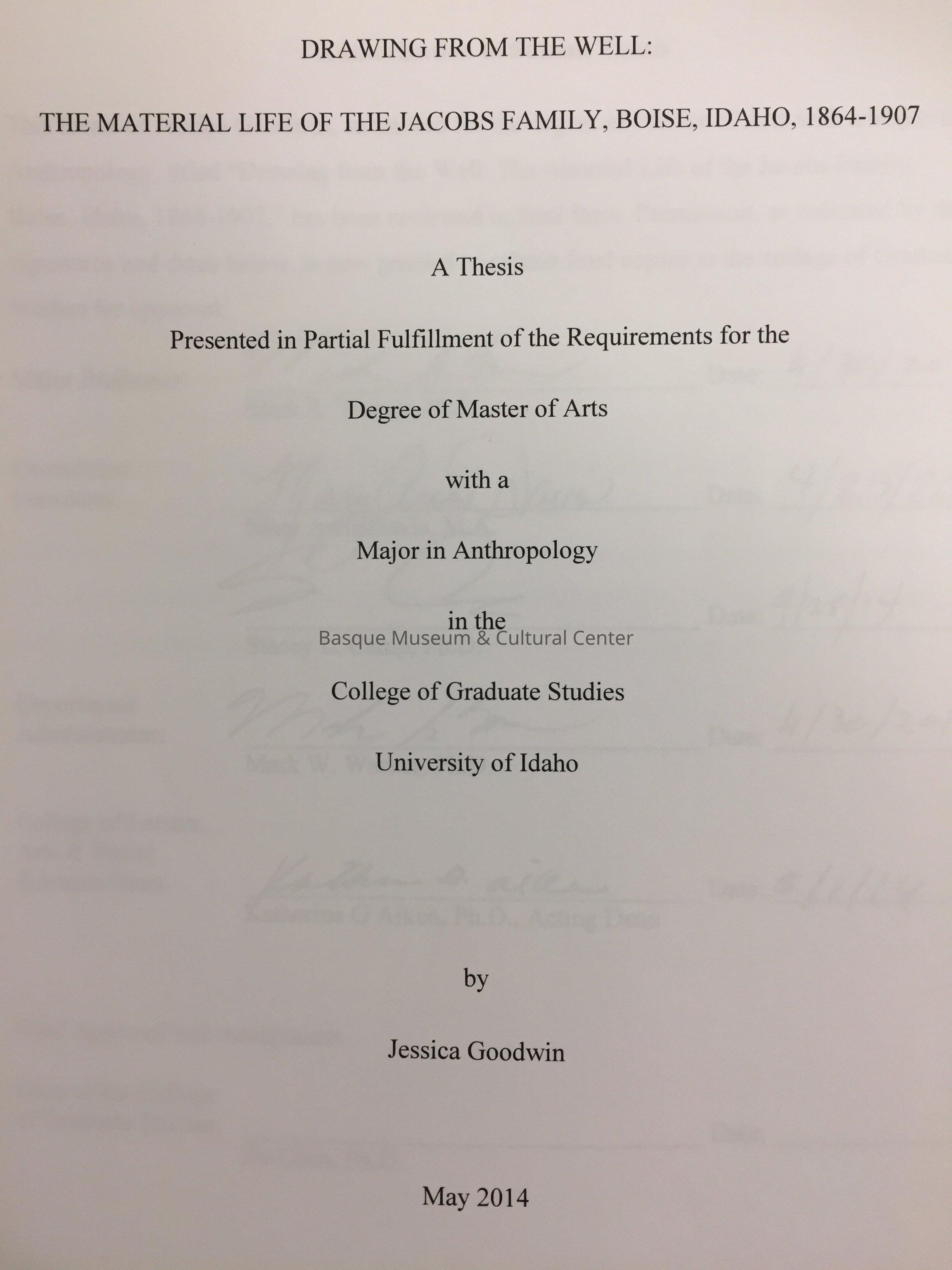 Drawing from the well : the material life of the Jacobs family, Boise, Idaho, 1864-1907Entry/Object ID