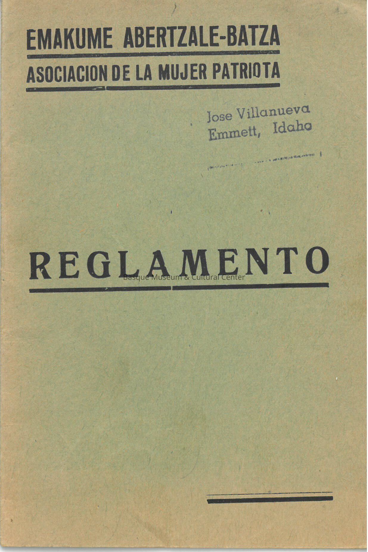 Emakume Abertzale-Batza Asociacion de la Mujer Patriota: ReglamentoEntry/Object ID