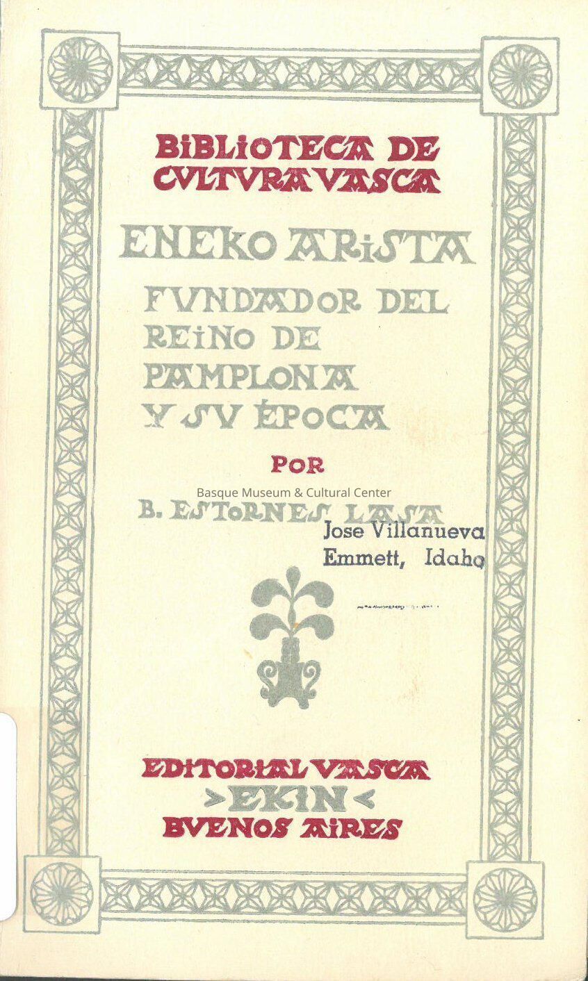 Eneko Arista: Founder of the Kingdom of Pamplona and his time. Donated by Jose Villanueva.