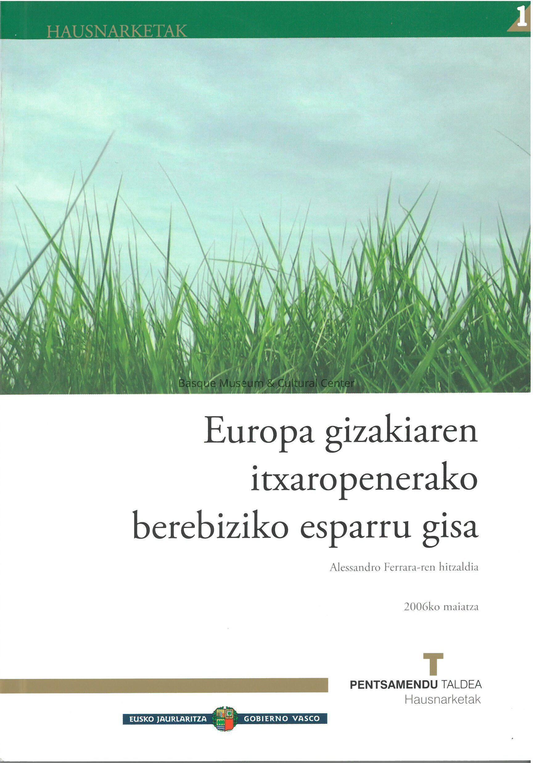 Europa como espacio privilegiado de la esperanza humana = Europa gizakiaren itxaropenerako berebiziko esparru gisaEntry/Object ID