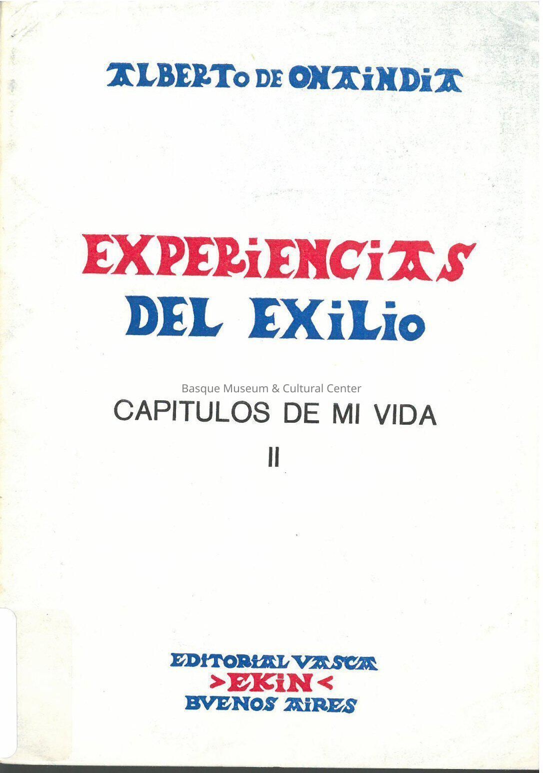 Experiences of exile: Chapters of my life II Autobiography of Alberto de Onaindia during Spanish Civil War 1936-1939.