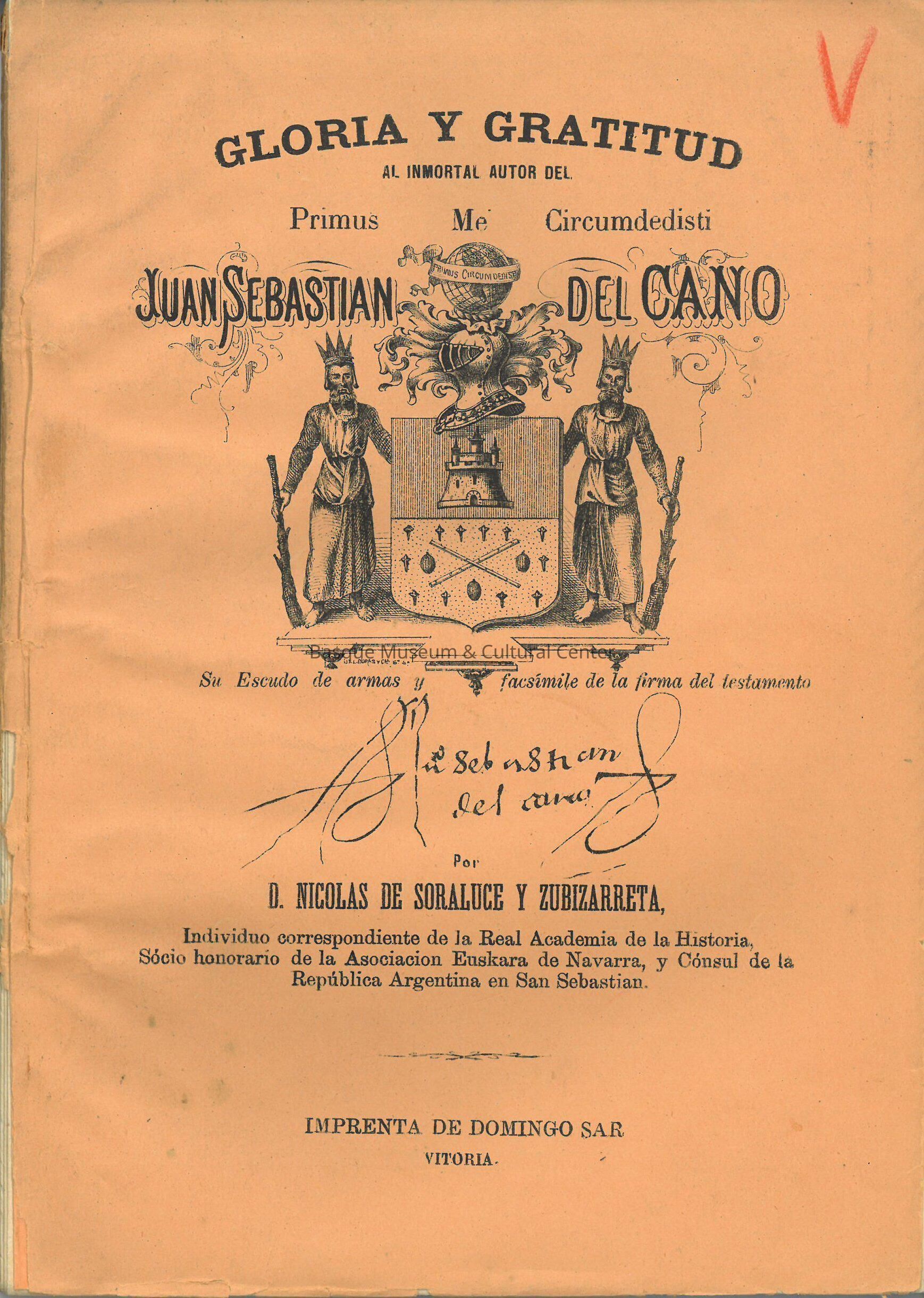 Gloria y gratitud al inmortal autor del Primus me circumdedisti, Juan Sebastia´n del Cano.Entry/Object ID
