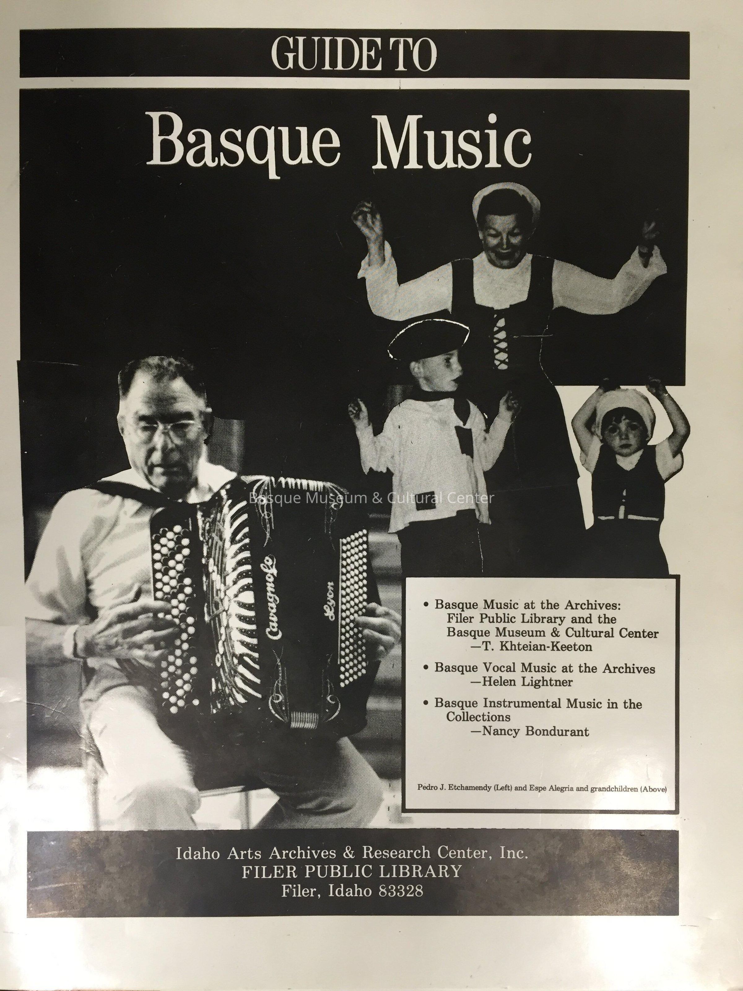 Basque music at the archives: Filer Public Library and the Basque Museum & Cultural Center / T. Khteian-Keeton--Basque vocal music at the archives / Helen Lightner--Basque instrumental music in the collections / Nancy Bondurant.