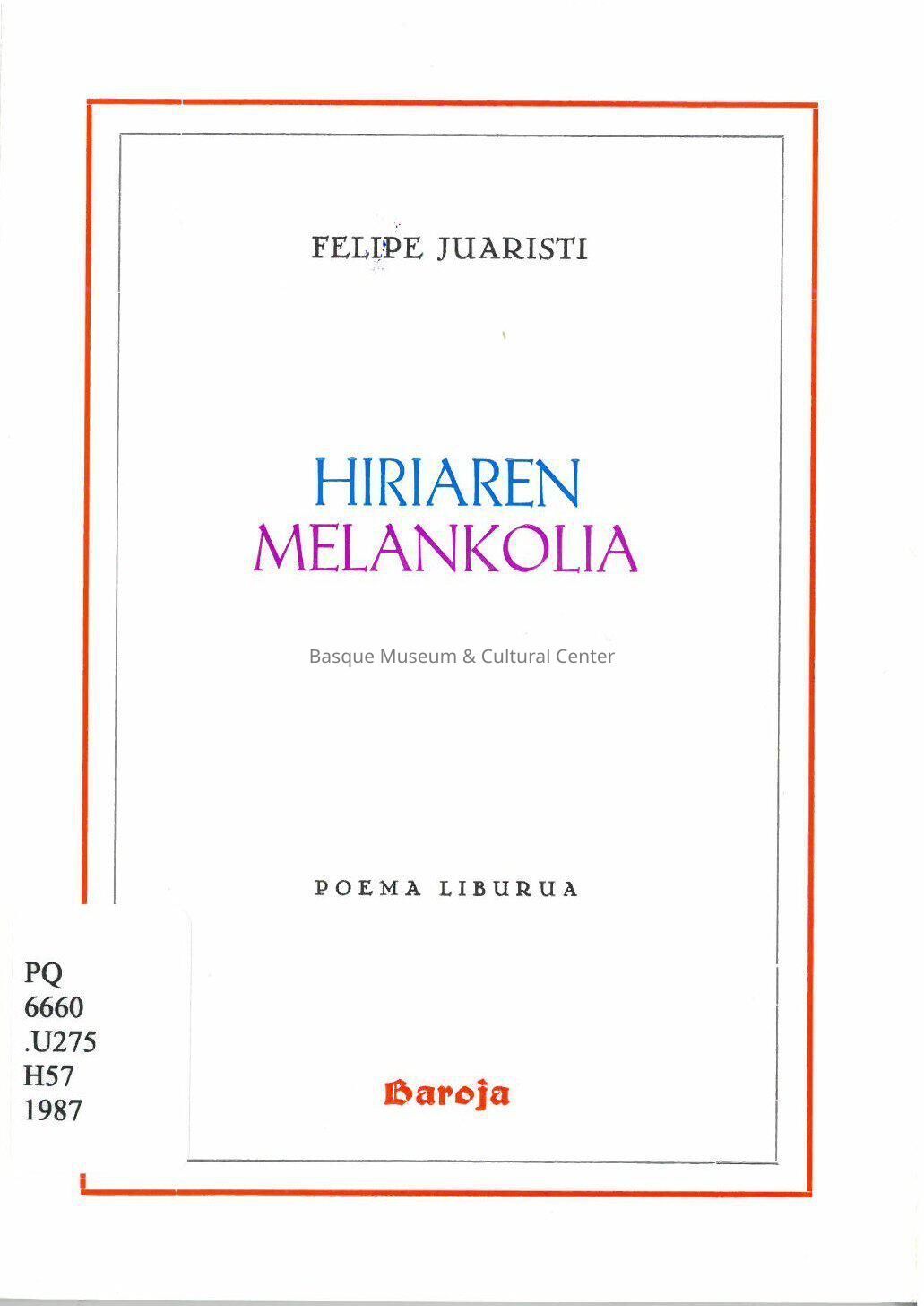 Hiriaren Melankolia: poema liburuaEntry/Object ID