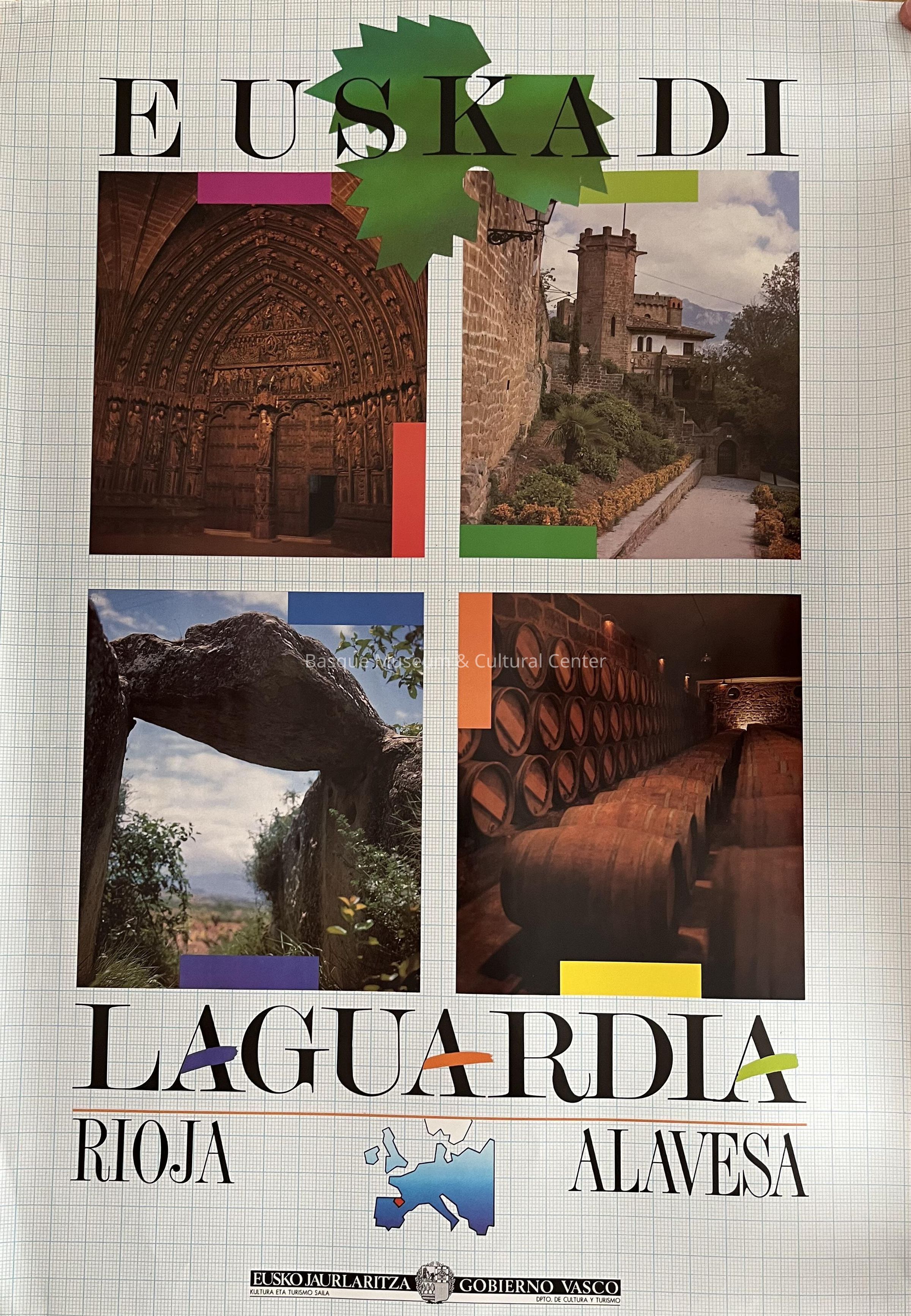 Full-Color Poster promoting the Rioja Alaveda area of the Basque city of Laguardia, a tourist area famous for its wine and vineyards.