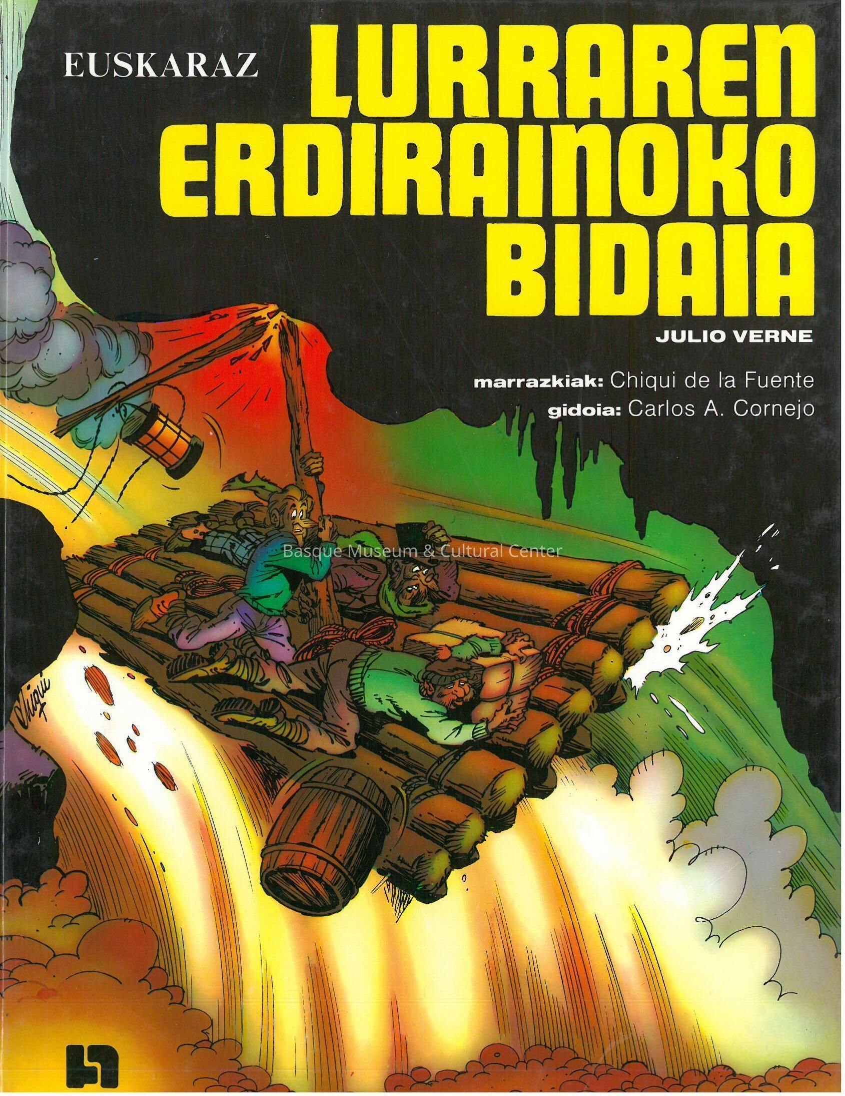 Cartoon adaptation in Basque of: Journey to the center of the earth / Jules Verne. 47 pages : color illustrations ; 30 cm.