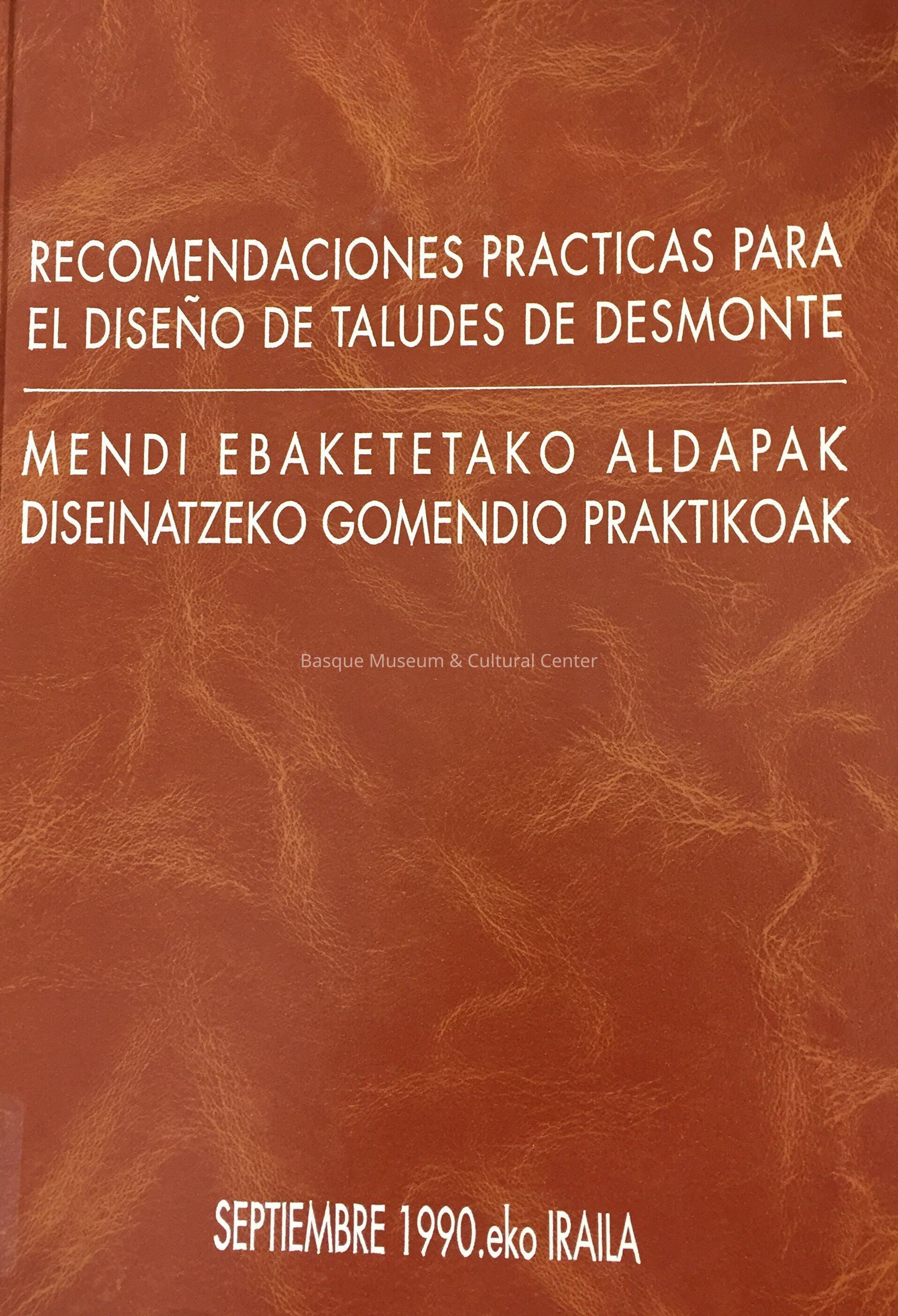 Mendi ebaketetako aldapak diseinatzeko gomendio praktikoak = Recomendaciones pra´cticas para el disen~o de taludes de desmonteEntry/Object ID