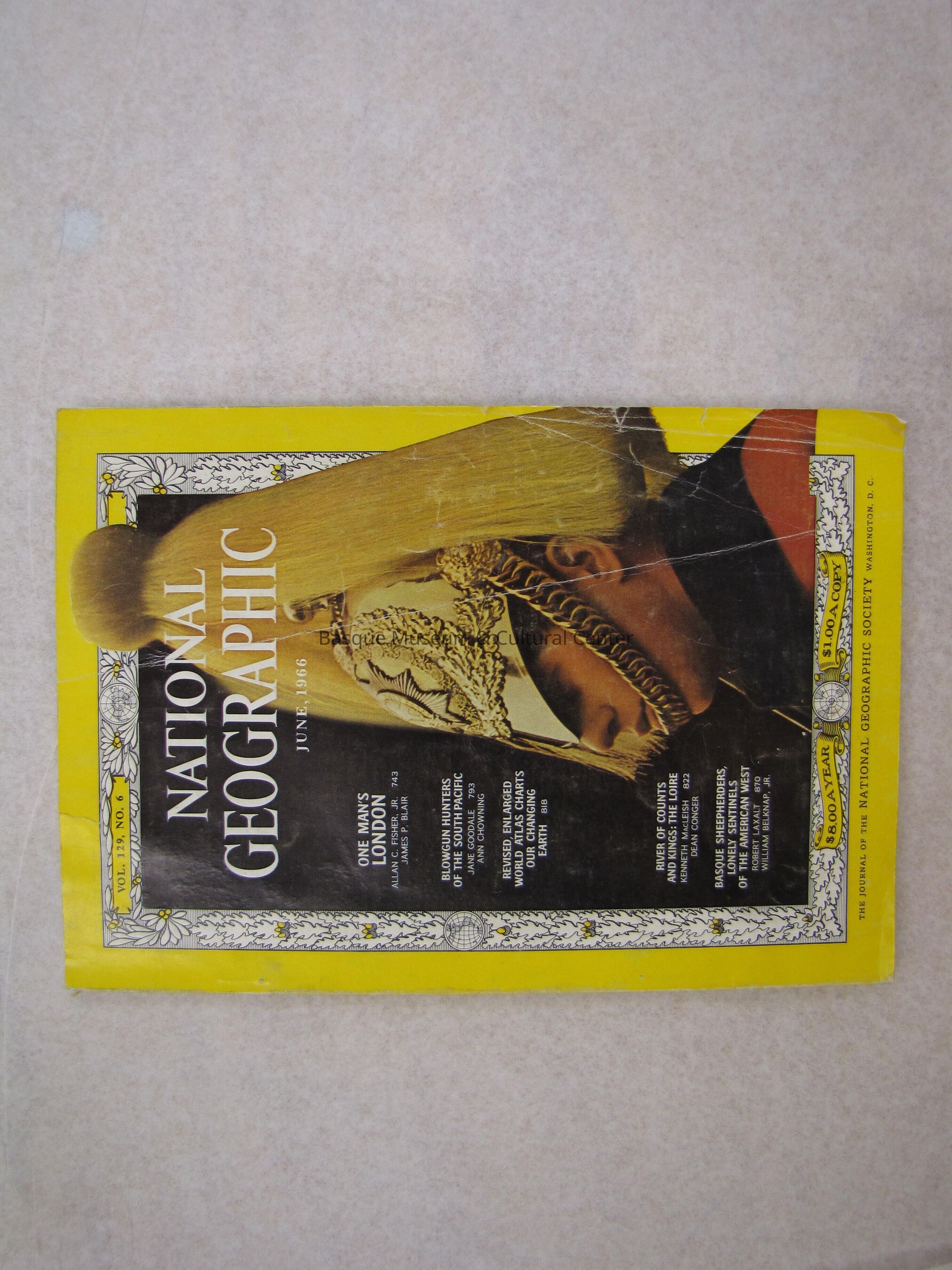 "National Geographic" Vol.129, No. 6 (June 1966); profile of British guard on front; Article entitled "Basque Sheepherders, Lonely Sentinels of the American West"; pg. 870 -888; by Robert Laxalt; includes color pictures.