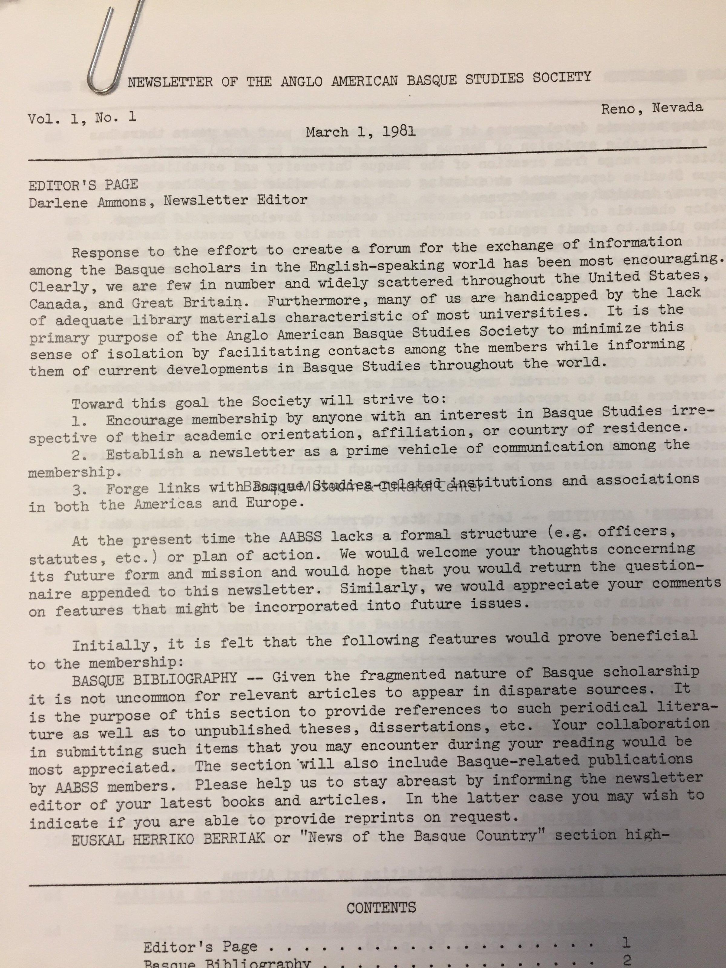 Newsletter of the Anglo American Basque Studies SocietyEntry/Object ID