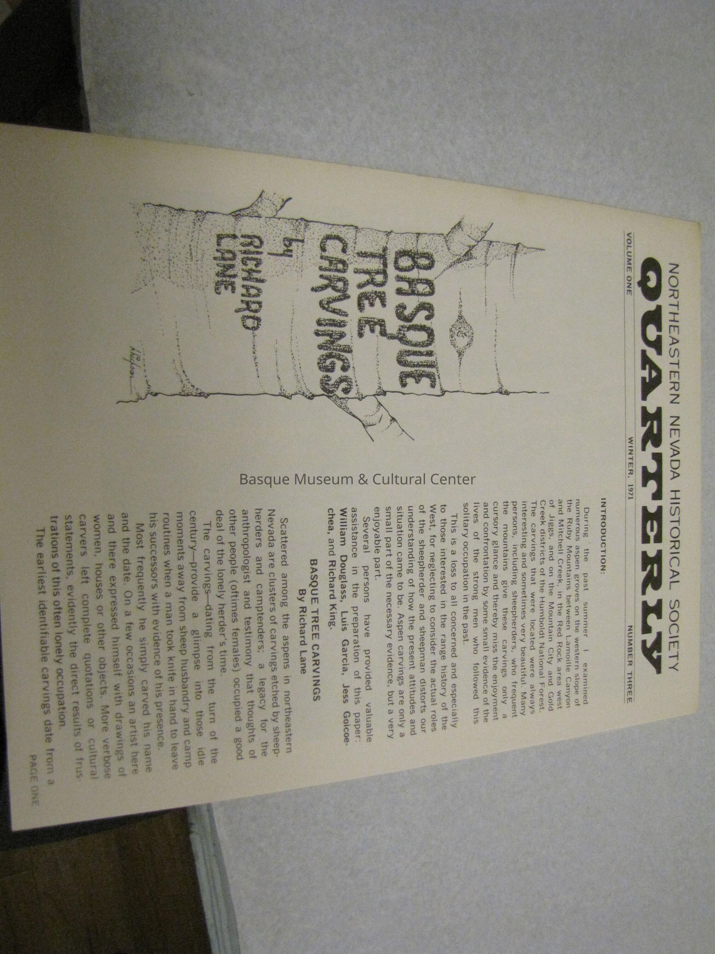 This short 9 page periodical is about the Arboglyphs Basque sheepherders left on trees. There are lots of pictures and captions to go along with them. As well as an introduction and explaination.