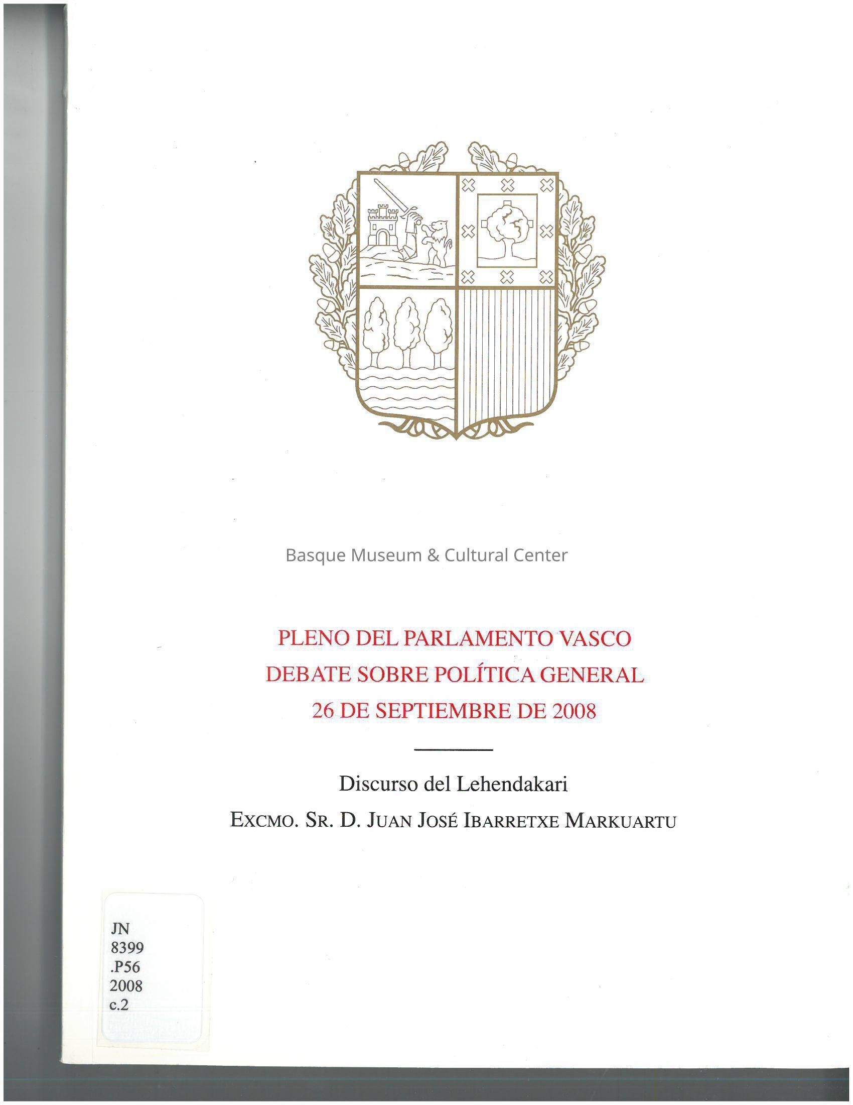 Pleno del parlamento vasco debate sobre politica general 26 de Septiembre de 2008Entry/Object ID