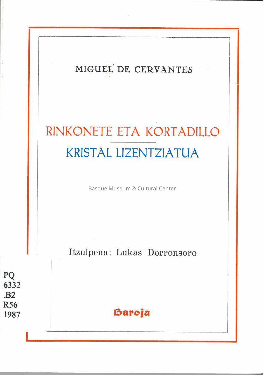 Translation of: Rinconete y Cortadillo and El licenciado Vidriera 128 p. 19 cm
