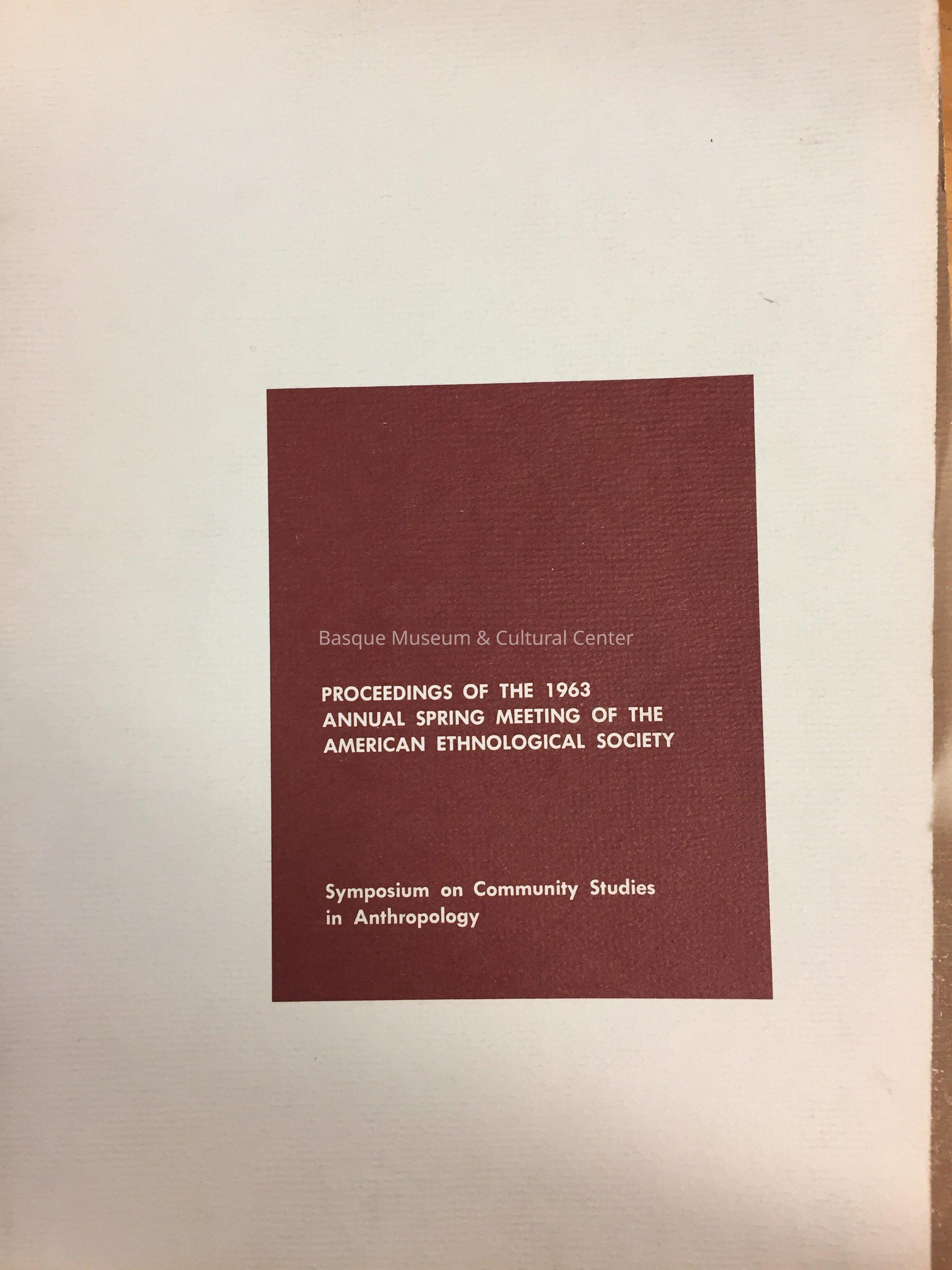Symposium on Community Studies in Anthropology : proceedings of the 1963 Annual Spring Meeting of the American Ethnological SocietyEntry/Object ID