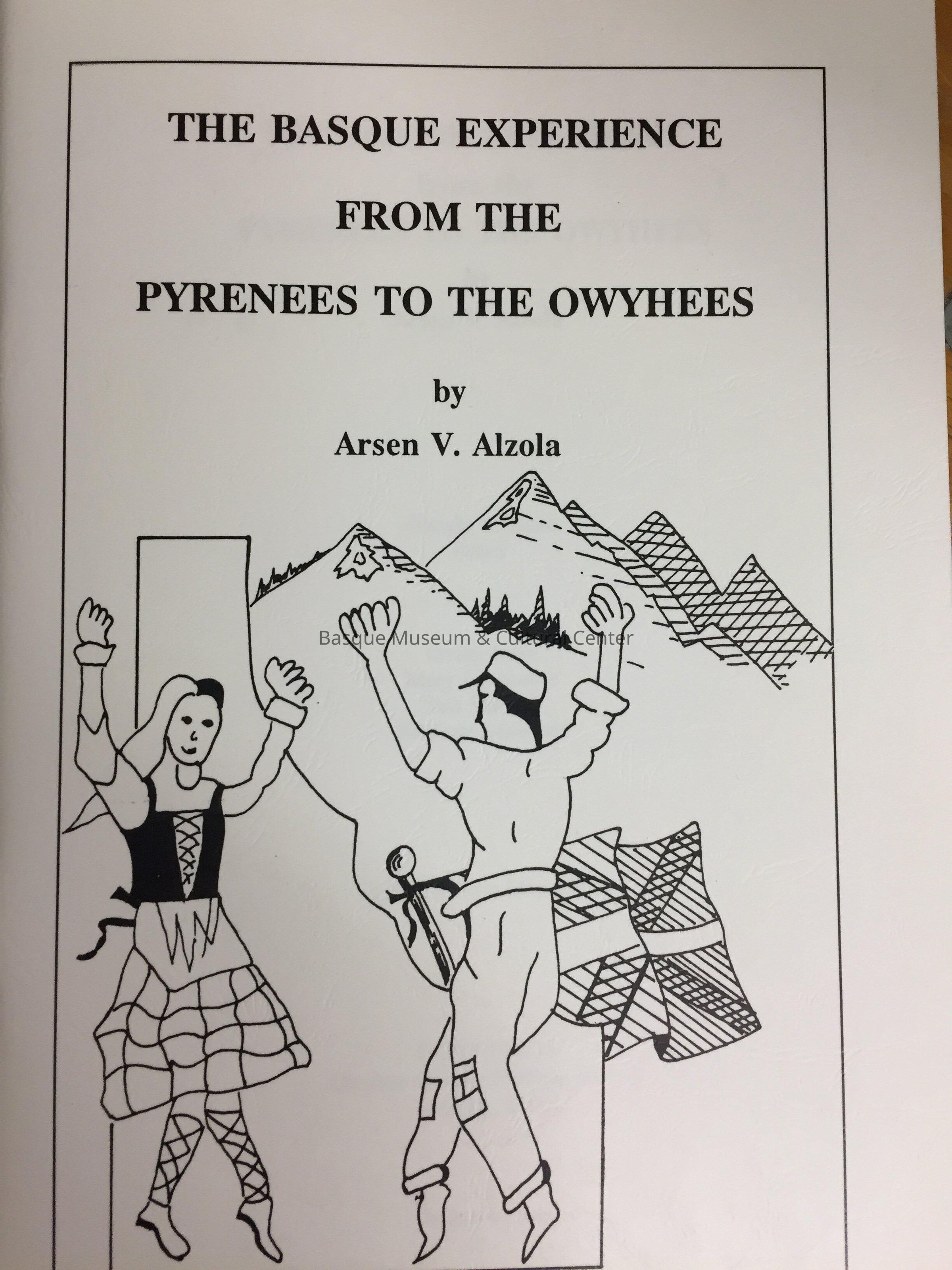 Cover is white with a black line drawing of two Basque dancers in front of a Basque flag, mountains, and an outline of the state of Idaho.