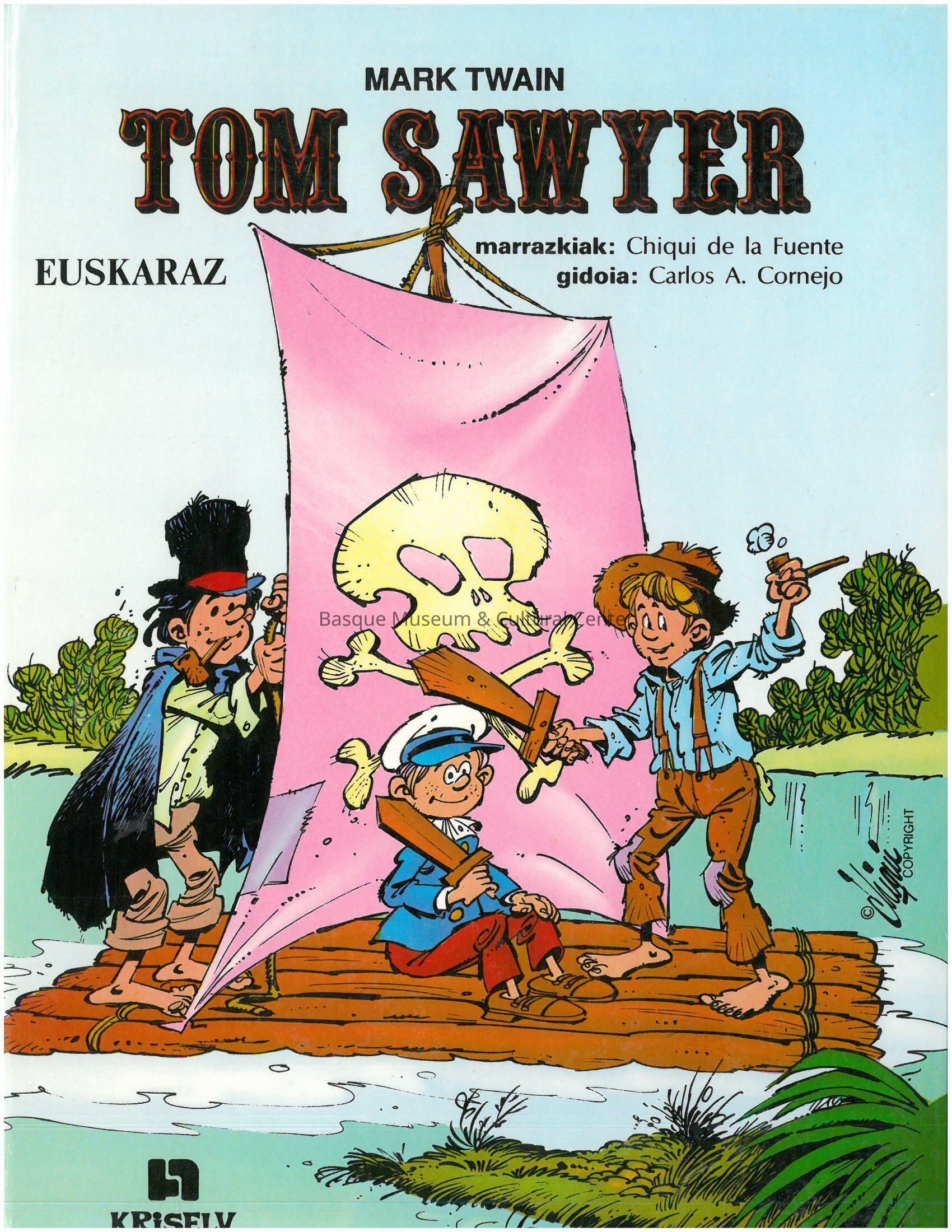 A re-telling in Basque and in comic form of the classic story of Tom Sawyer by Mark Twain. The adventures of boys growing up in the nineteenth century in a Mississippi River town, as they play hookey on an island, witness a crime, hunt for pirates' treasure, and become lost in a cave.