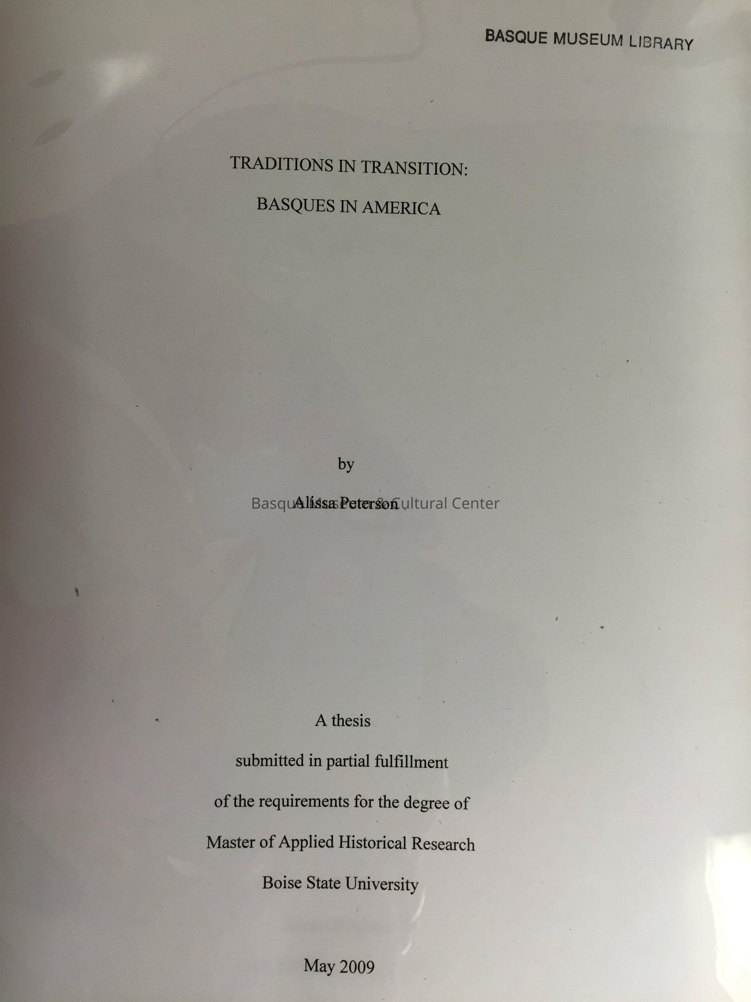 Interpretive narrative of the author's exhibition: "Tradition in transition : Basques in America" at the Basque Museum & Cultural Center, Boise, Idaho. The exhibit centers around the Basque migration to the American West and the expression of ethnicity through various cultural artifacts, practices and traditions.