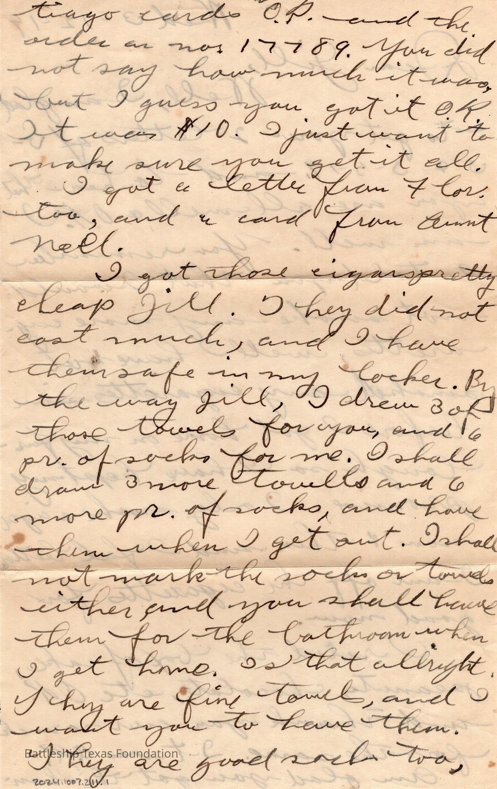 Battleship Texas had her own post office. All mail passed through a censor before leaving the ship. Once the package is checked, it was stamped with a “U.S.S. TEXAS” stamp. If in a port, mail could carry the markers of the post office on shore.Collection