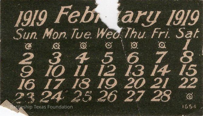 1919 February calendar stripEntry/Object ID