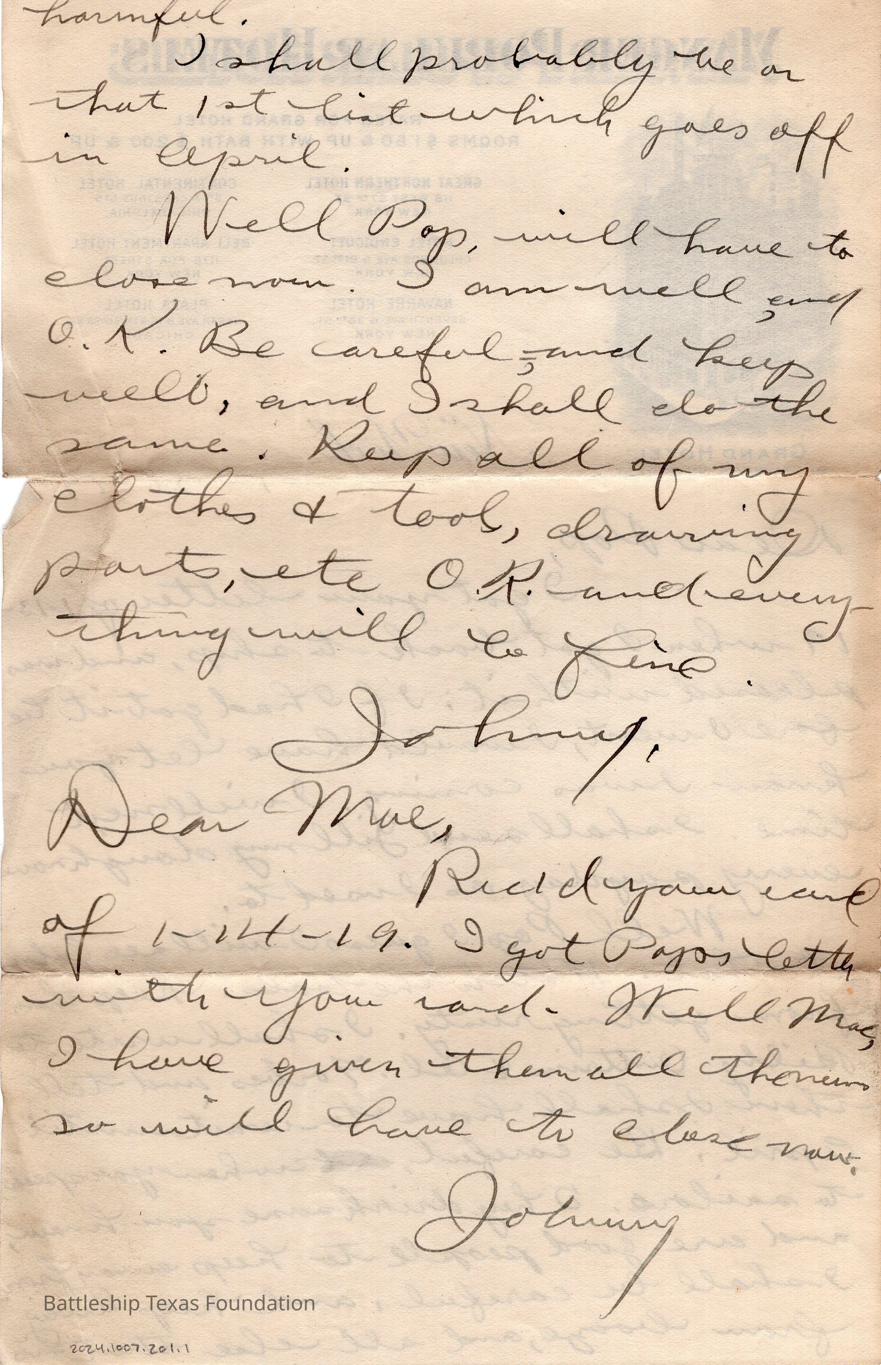 Battleship Texas had her own post office. All mail passed through a censor before leaving the ship. Once the package is checked, it was stamped with a “U.S.S. TEXAS” stamp. If in a port, mail could carry the markers of the post office on shore.Collection
