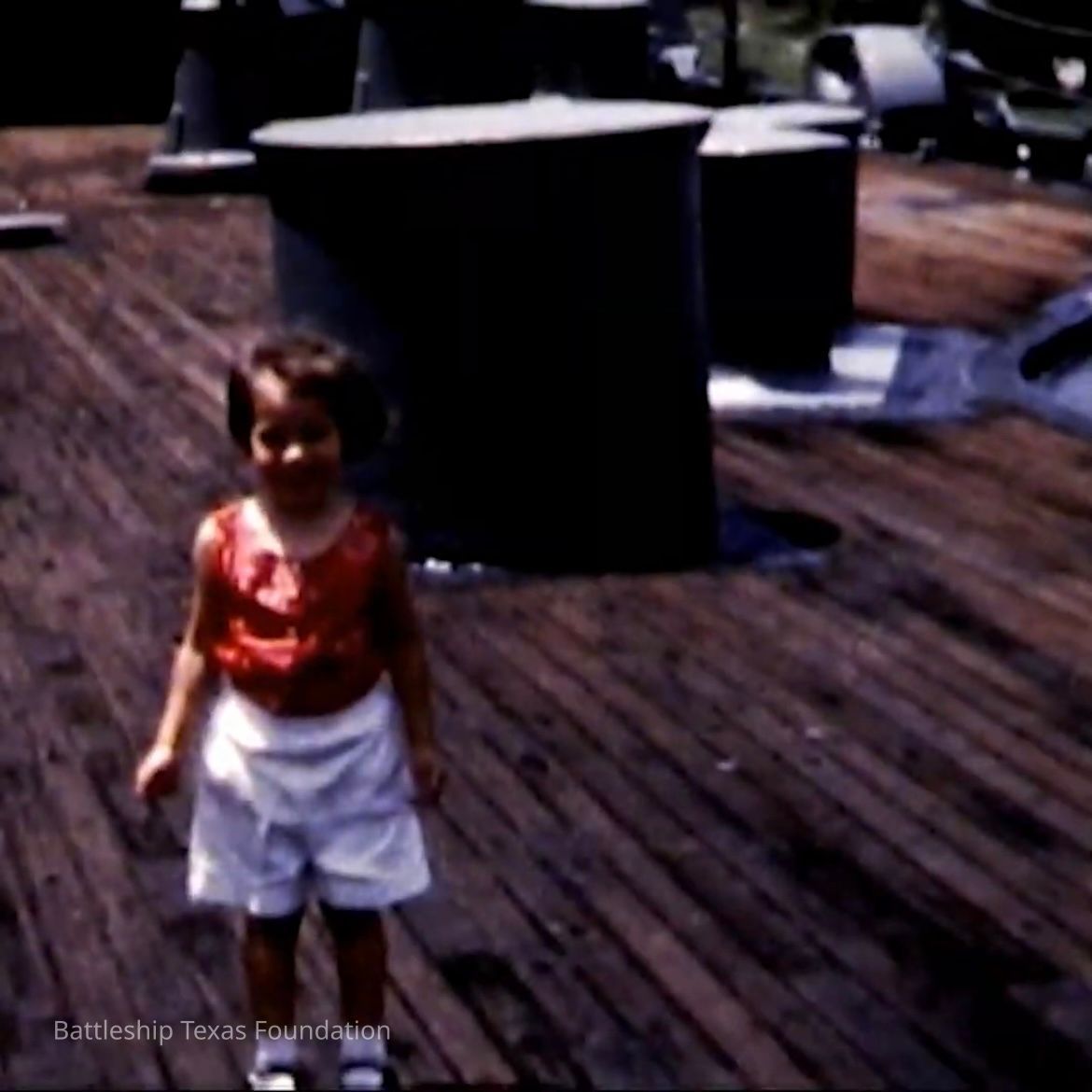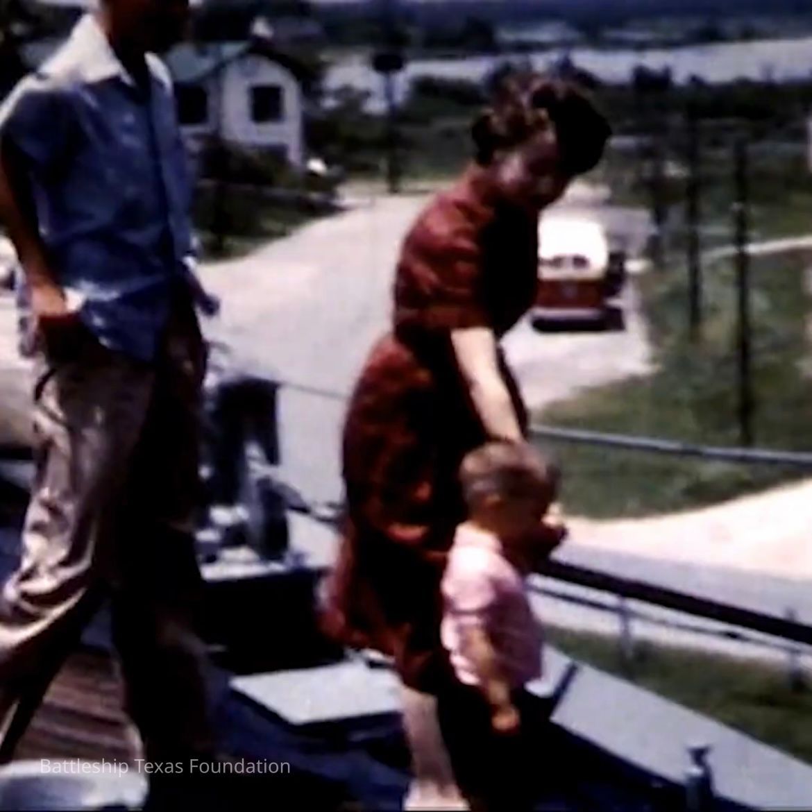 8mm film taken during the late 1950s. The reel’s full length is 11 minutes and 38 seconds. It features roughly one minute worth of footage where the family visits Battleship Texas from 7:25 to 8:22. Footage shows her starboard side from the park, port side looking aft, and her bow forward of the turrets.Context