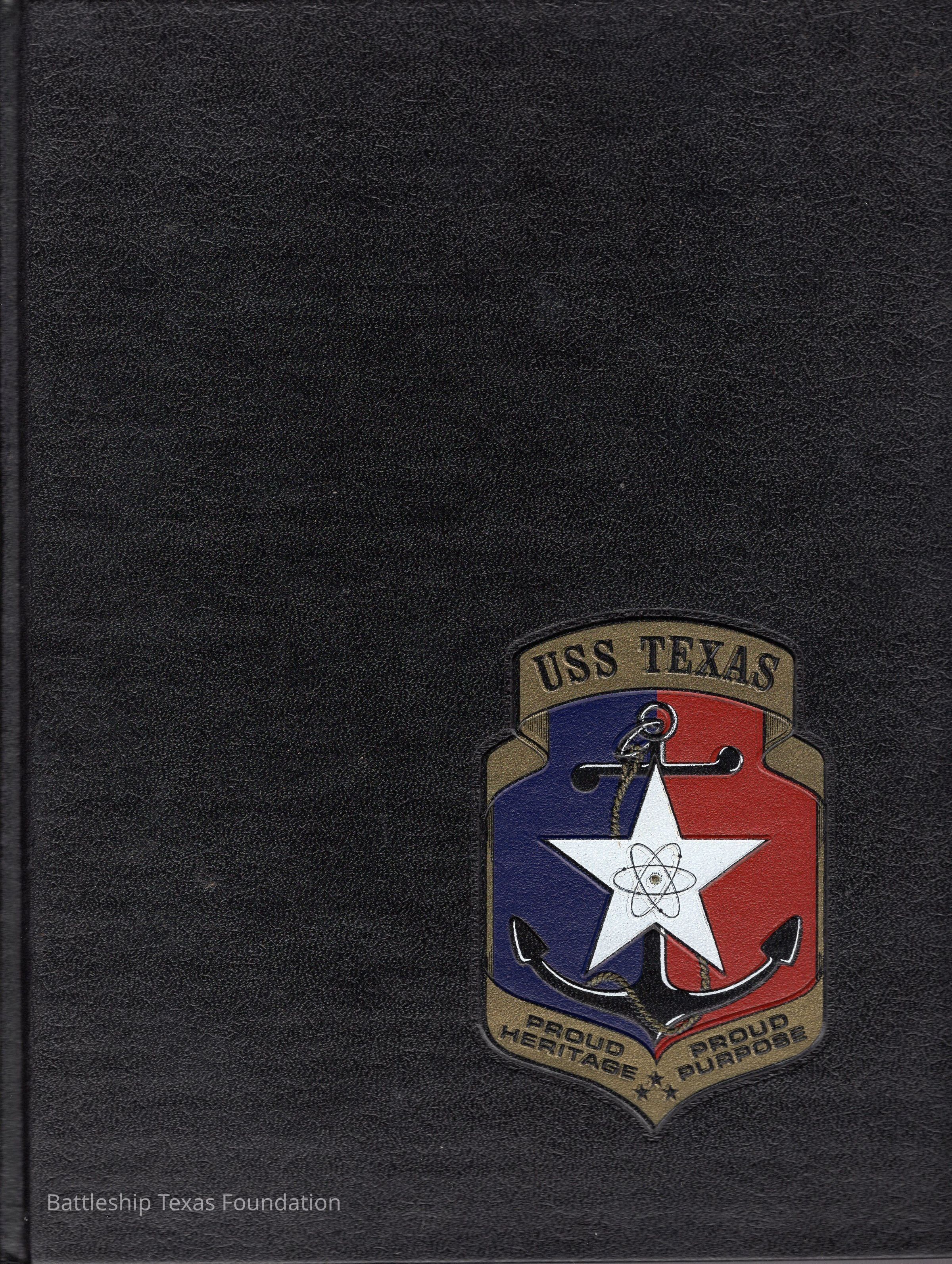 Cruise book of Cruiser Texas' 1979-1980 deployment. Dark cover with ship emblem in the bottom right of the cover. The book has slight water damage on the interior.Context