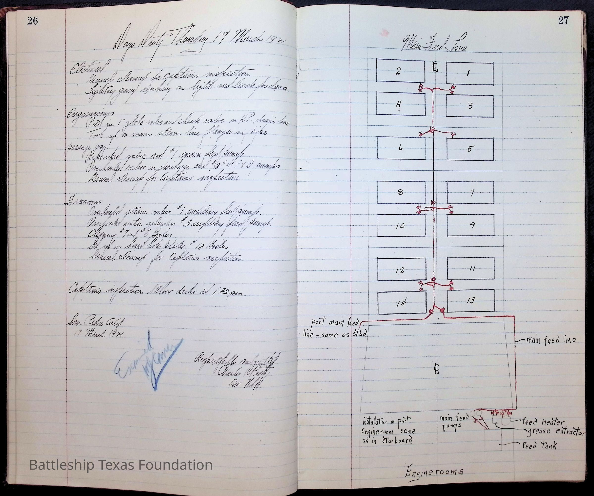 Pages 1-41: notes and writings on engineering spaces on Battleship Texas
