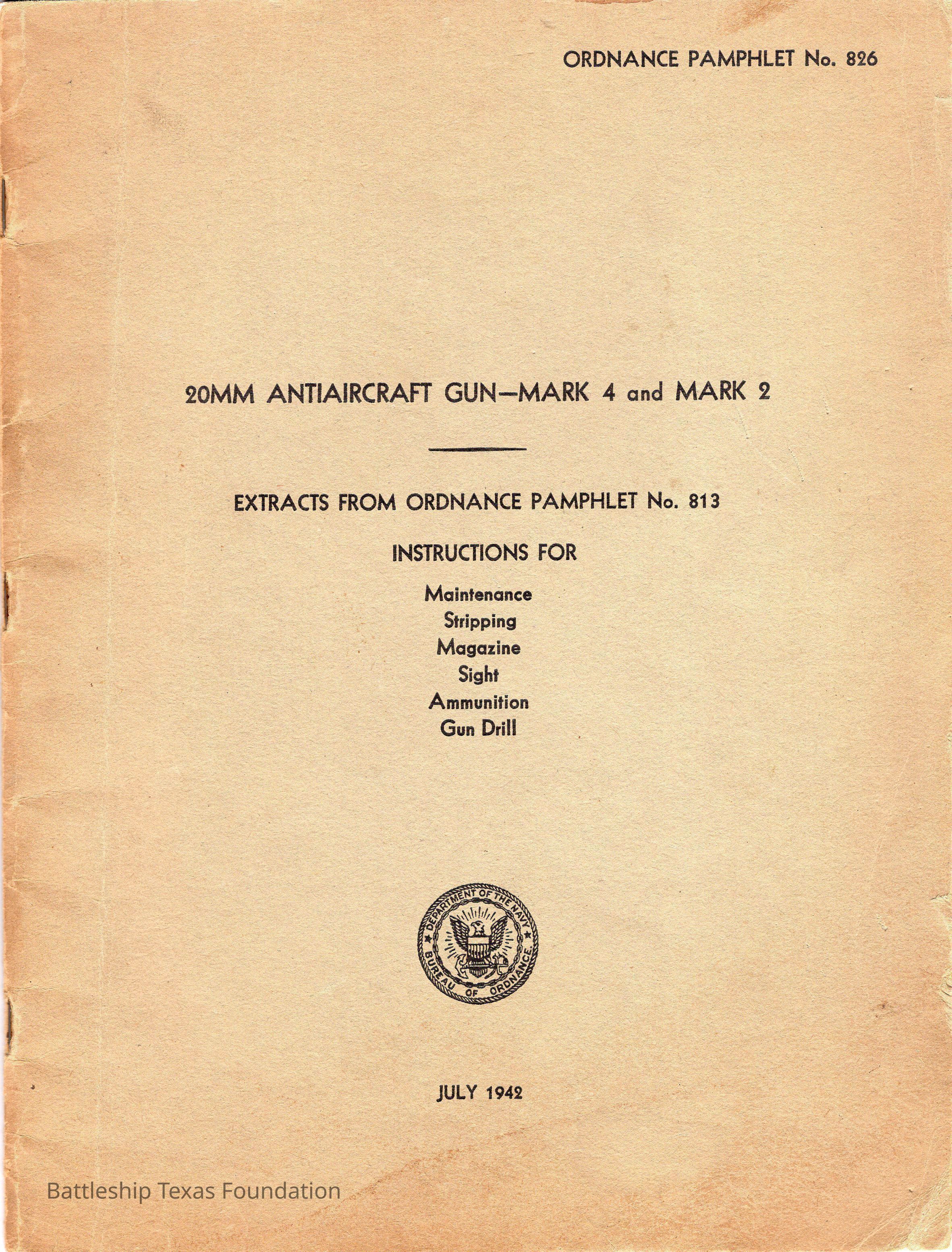 Ordnance pamphlet for 20mm Oerlikons. Printed July 1942Context