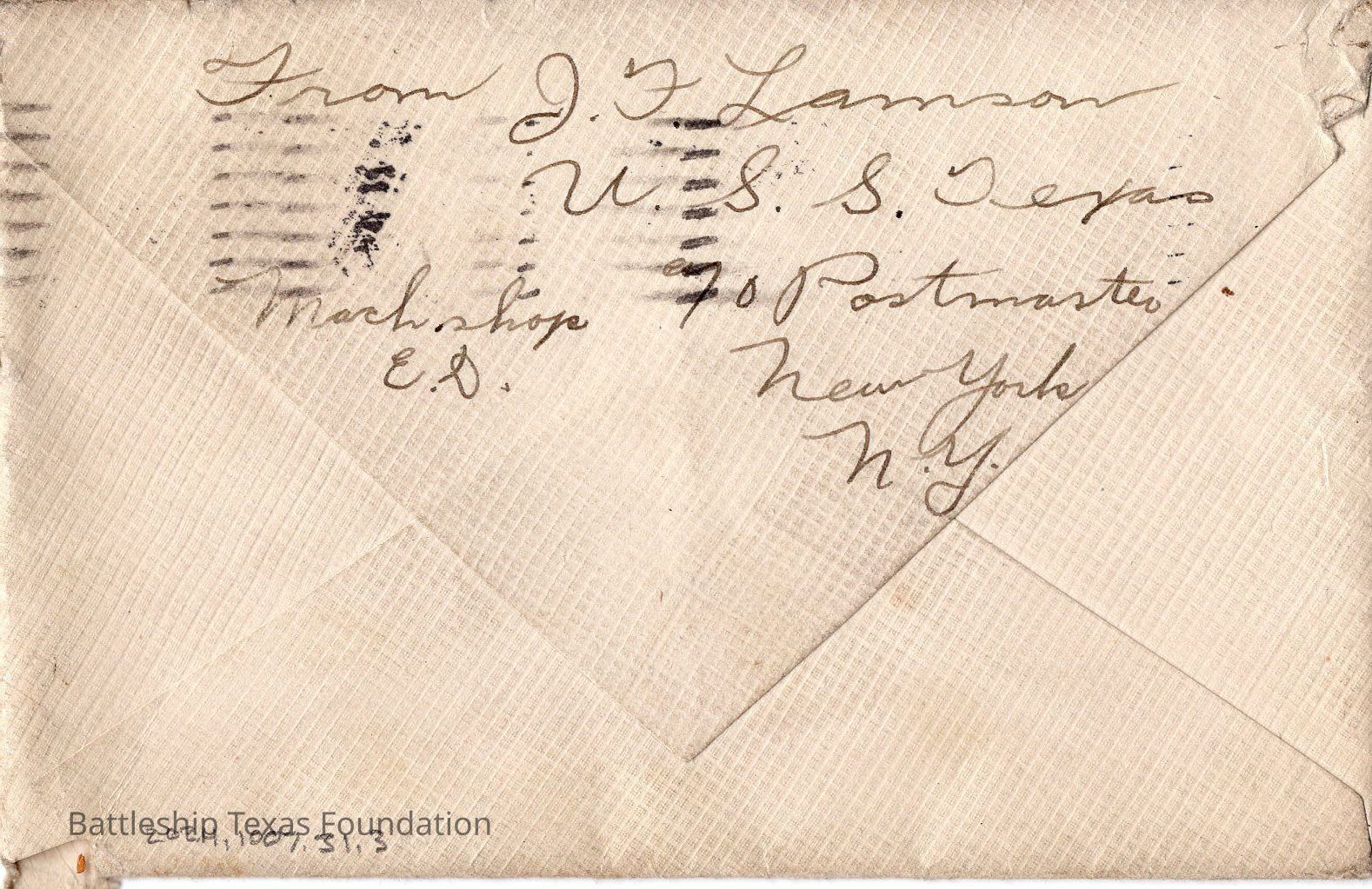 Battleship Texas had her own post office. All mail passed through a censor before leaving the ship. Once the package is checked, it was stamped with a “U.S.S. TEXAS” stamp. If in a port, mail could carry the markers of the post office on shore.Collection